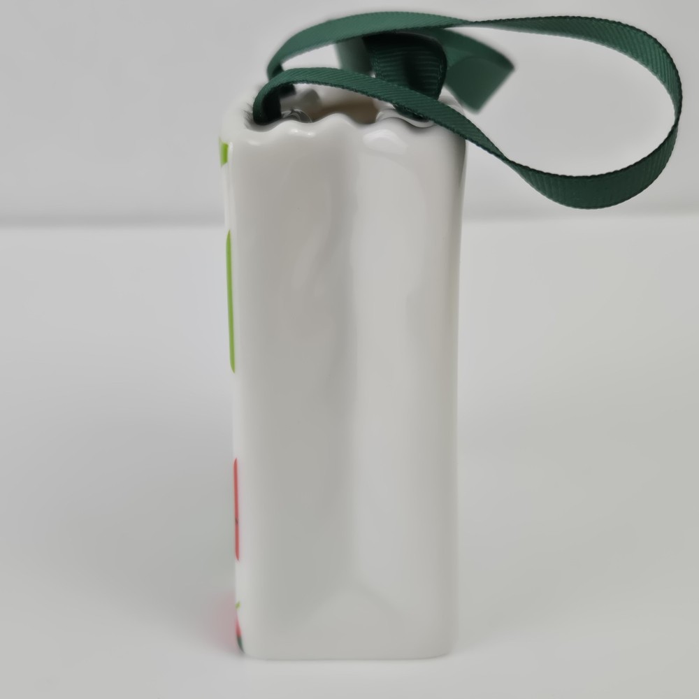 This Starbucks Ceramic gift bag is perfect for holding a gift card or other small item. It measures 3" x 1 3/8" x 3.5". Might be good as a teacher appreciation gift with the nod to the traditional apple gift.