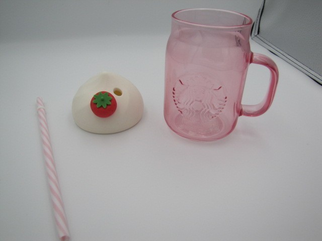 The Starbucks 2020 Strawberry Ice Cream 16 oz Glass Cup is a delightful collectible featuring a pink color and a coffee & tea theme. This original product from Starbucks includes a whipped cream lid and straw, adding a touch of indulgence to your ice cream experience. Made in China, this limited edition cup is a perfect addition to any Starbucks enthusiast's collection.