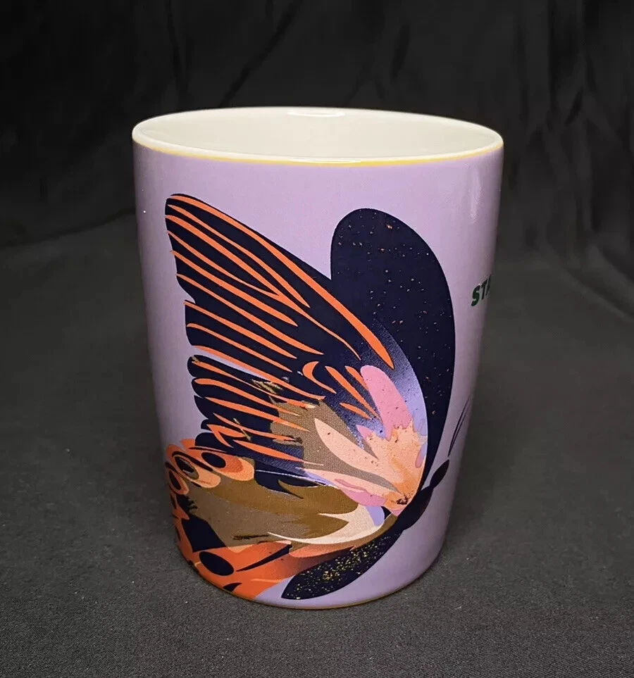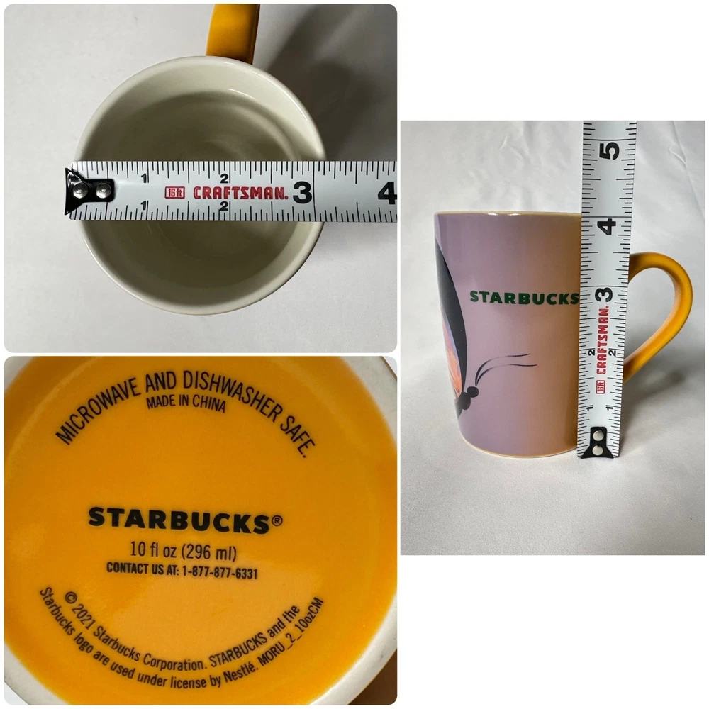Starbucks 2021 Butterfly 10 oz. Ceramic Mug. Approximately 4” tall and 3 1/8” wide across top rim. Condition is Used. Mug has surface wear/marks in the interior bottom. Please see photos for details.