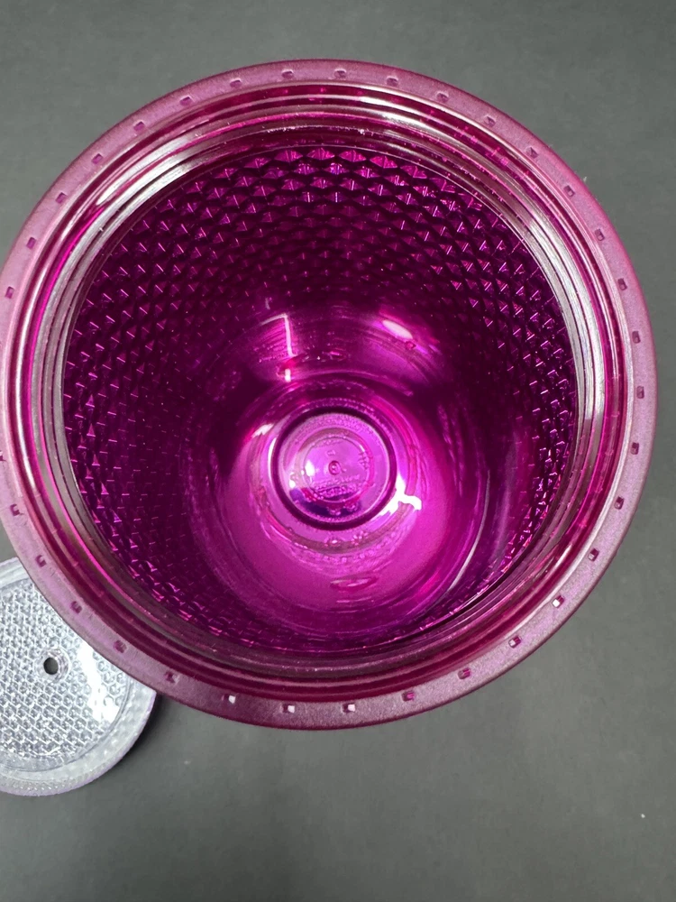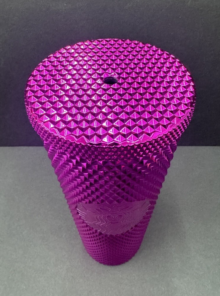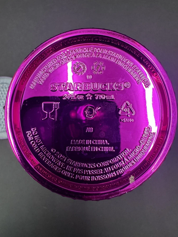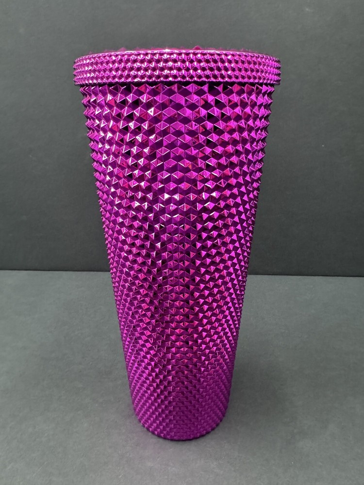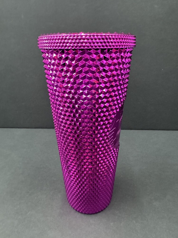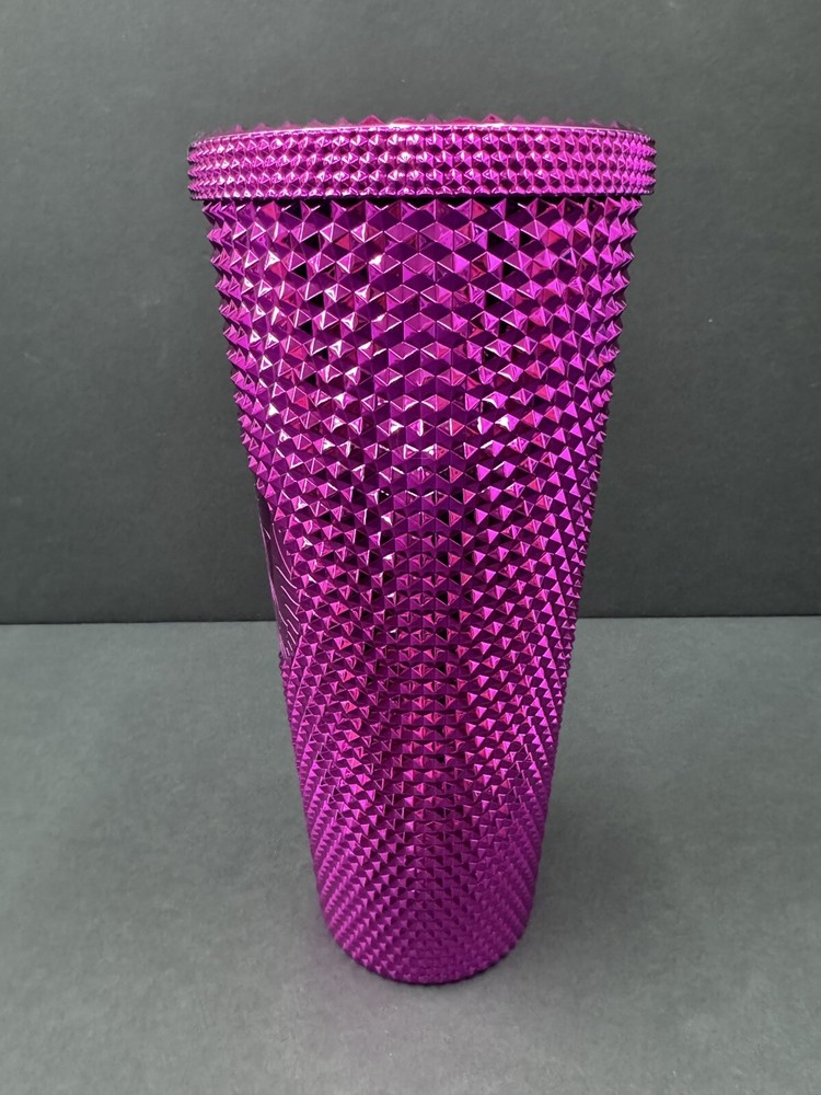No straw. Add some bling to your morning coffee routine with this Starbucks 2022 Sangria Pink Chrome Studded Venti Cold Cup Tumbler. The tumbler is originally manufactured in China and features a unique pink color with chrome accents and studs. It has a capacity of 24oz and is perfect for your favorite cold beverages. This Starbucks tumbler is a must-have for any coffee or tea lover who wants to add some style to their drinkware collection. The tumbler is an original piece and was created in 2021, making it a great addition to any Starbucks collection. It is perfect for use at home, work, or on the go.