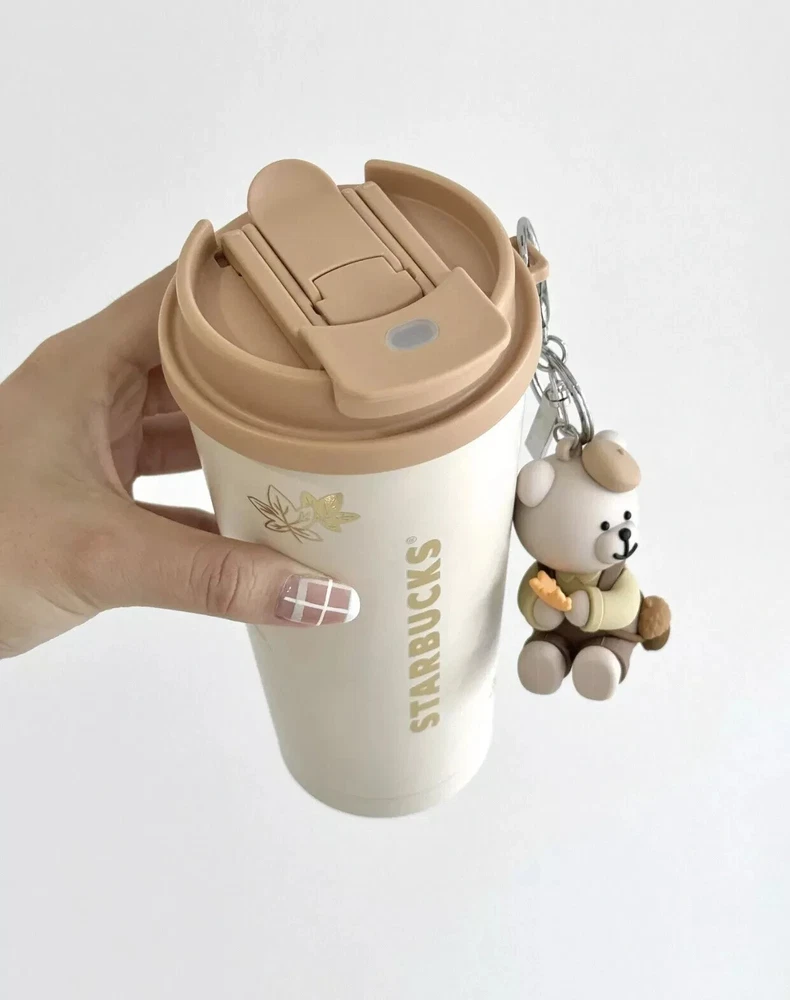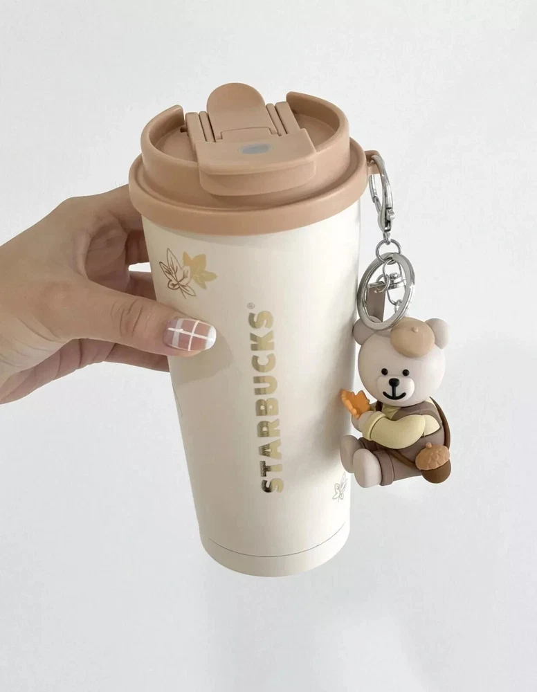Starbucks 2024 China Autumn Cute Bear Keychain 16oz brown SS Tumbler