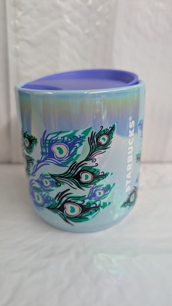New Starbucks 2024 Christmas Holiday Iridescent Peacock 8oz Ceramic Cup with Lid. Condition is New. Shipped with USPS Ground Advantage.