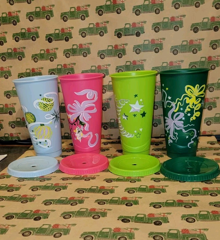 Starbucks 24 Oz Christmas Cold Cup Set of 4 Holiday Drinkware