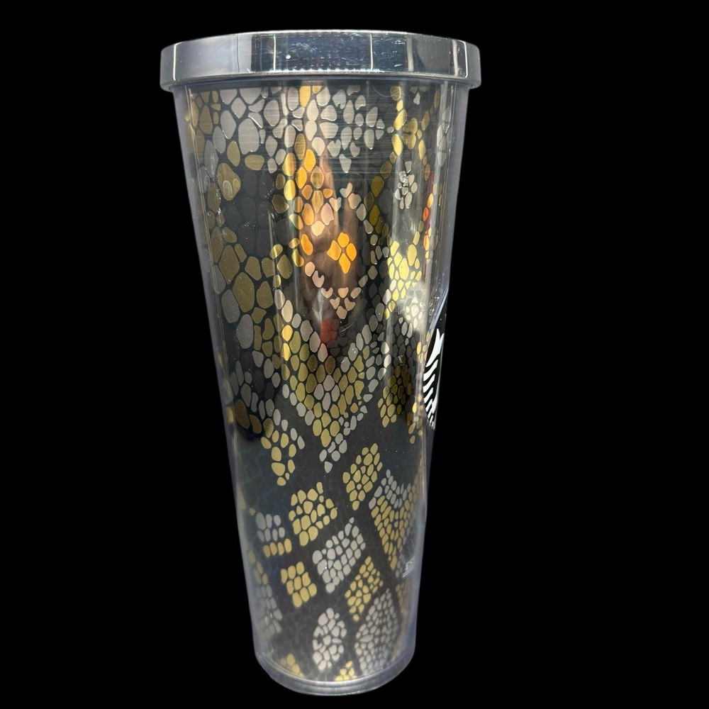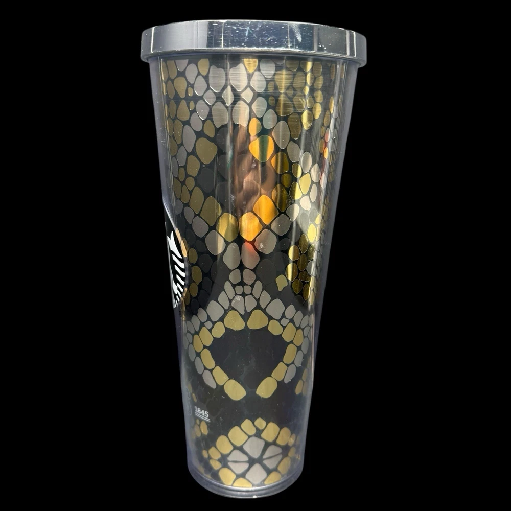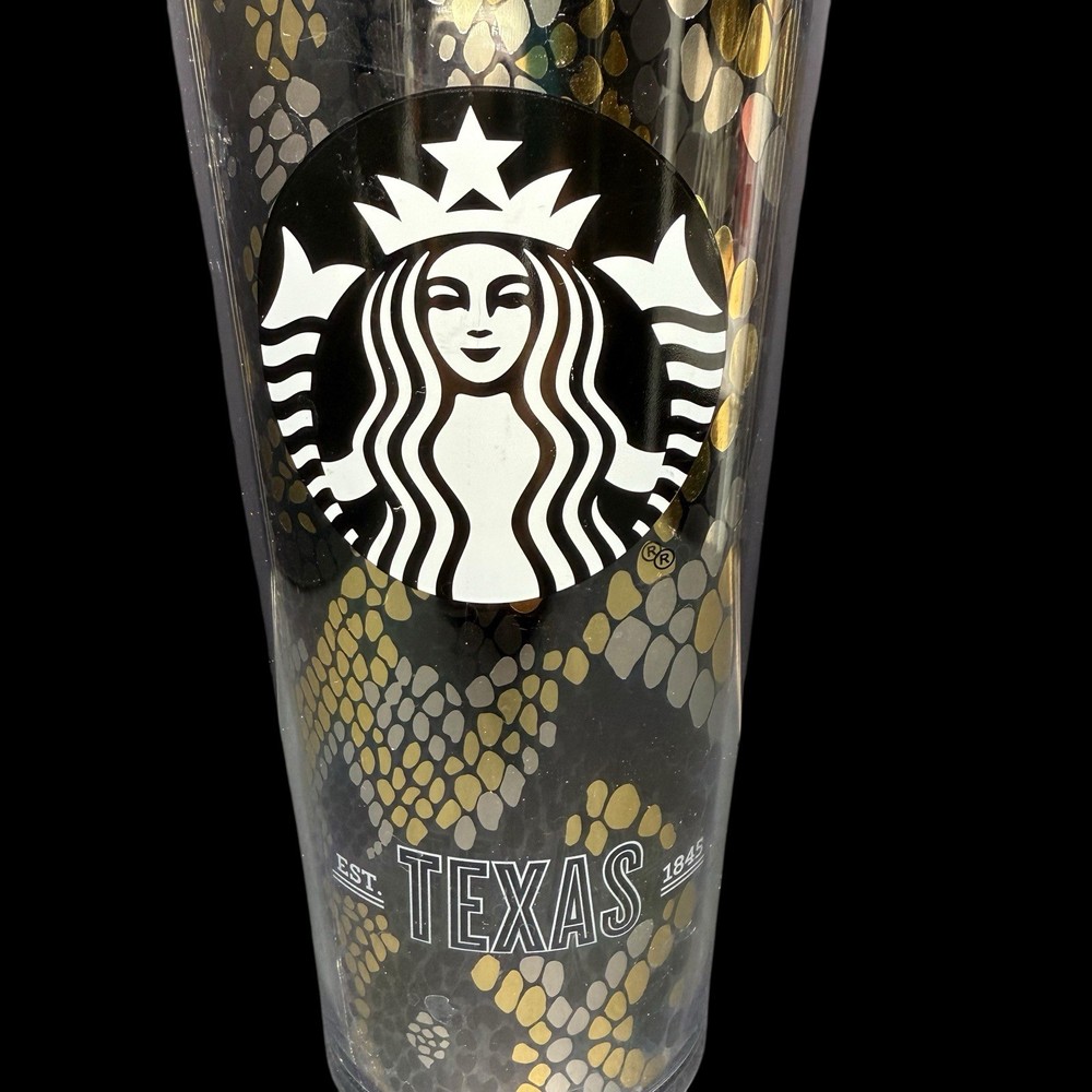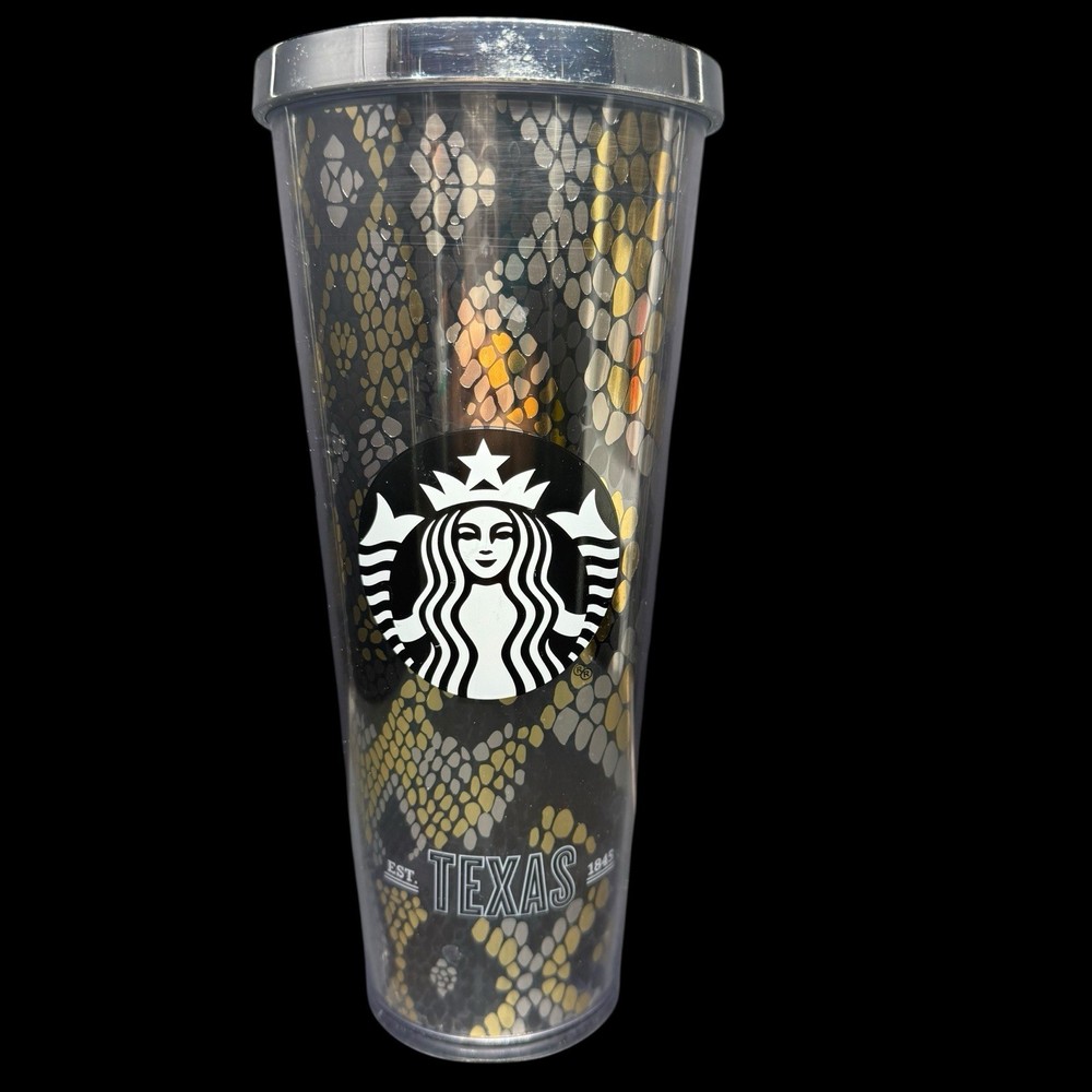 Starbucks 24 Oz Shiny Gold Silver Rattlesnake Snakeskin Texas Venti Tumbler