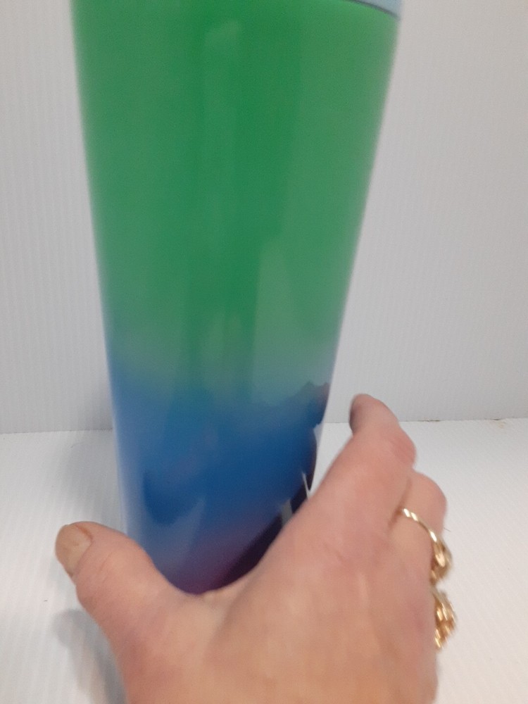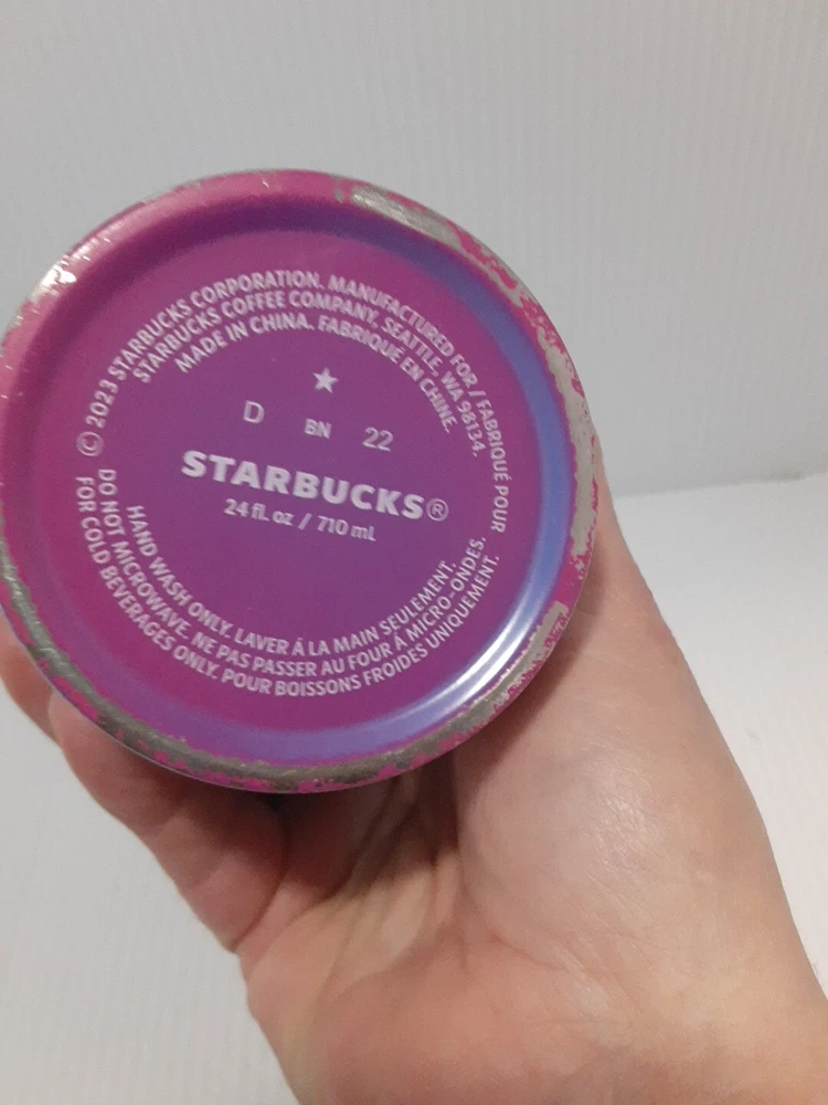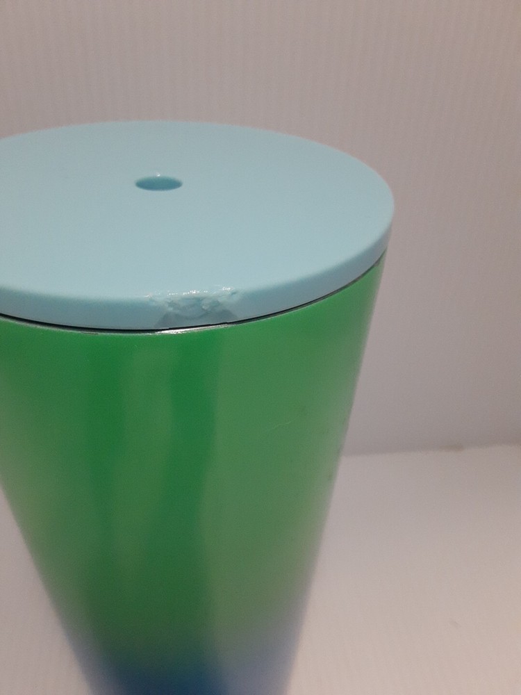 Metal 24oz cold cup with lid. Some paint loss on bottom, small chip in lid.