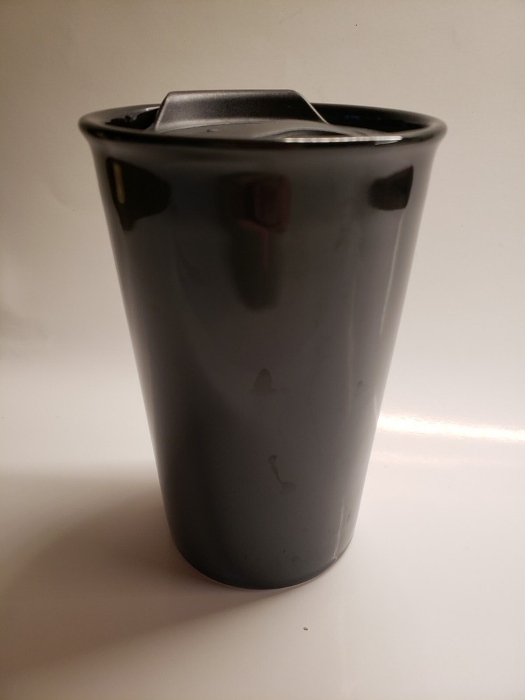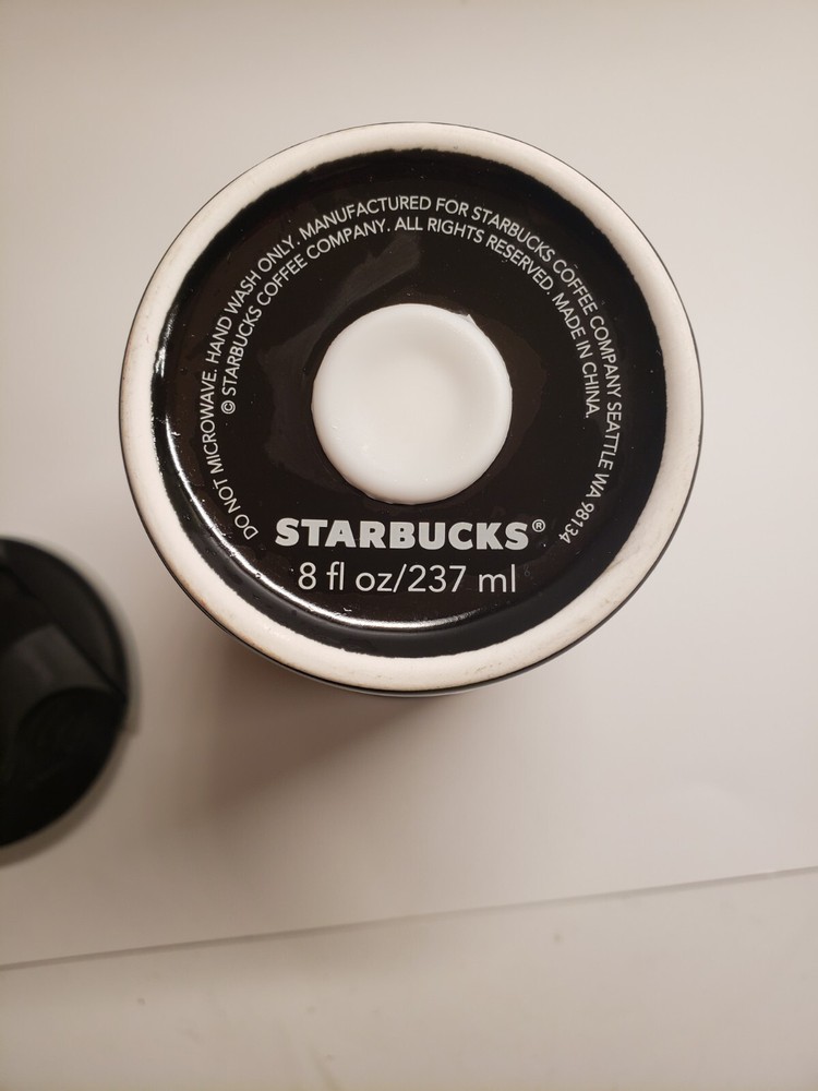 Enjoy your favorite beverage on the go with this sleek black Starbucks ceramic travel mug.