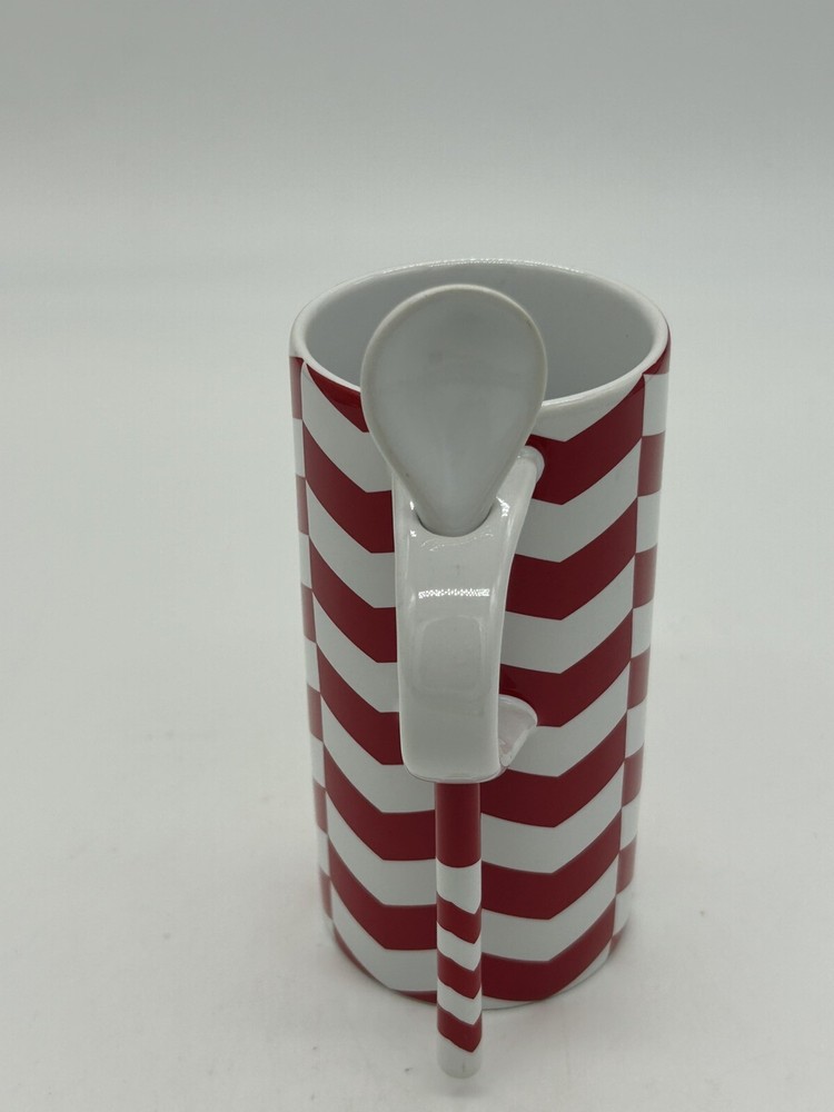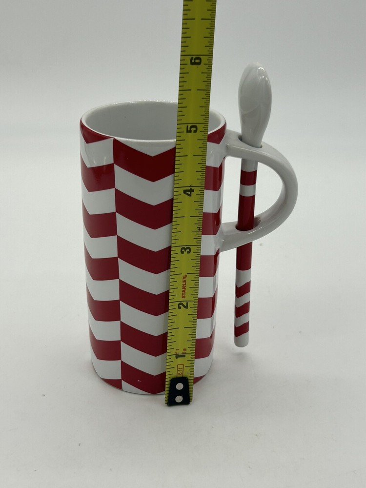 Starbucks Red/White Holiday Chevron Pattern Ceramic Mug w/ Spoon 8oz - 2013. Condition is "Used". Shipped with USPS Priority Mail.