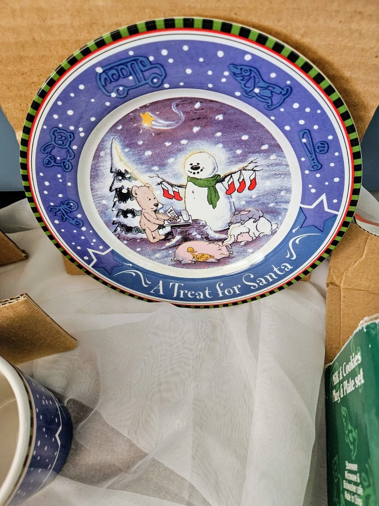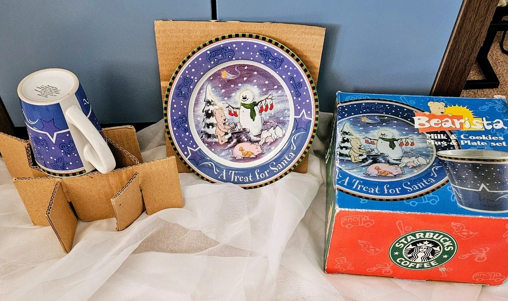 The Starbucks Barista XMAS Plate & Cup Set is an original collectible featuring a multi-color design. The theme of the set is centered around coffee and tea, making it a perfect addition for Starbucks enthusiasts. Made in China, this set includes a plate and cup with holiday-themed decorations perfect for festive occasions. *Box has some ware, but contents are new.