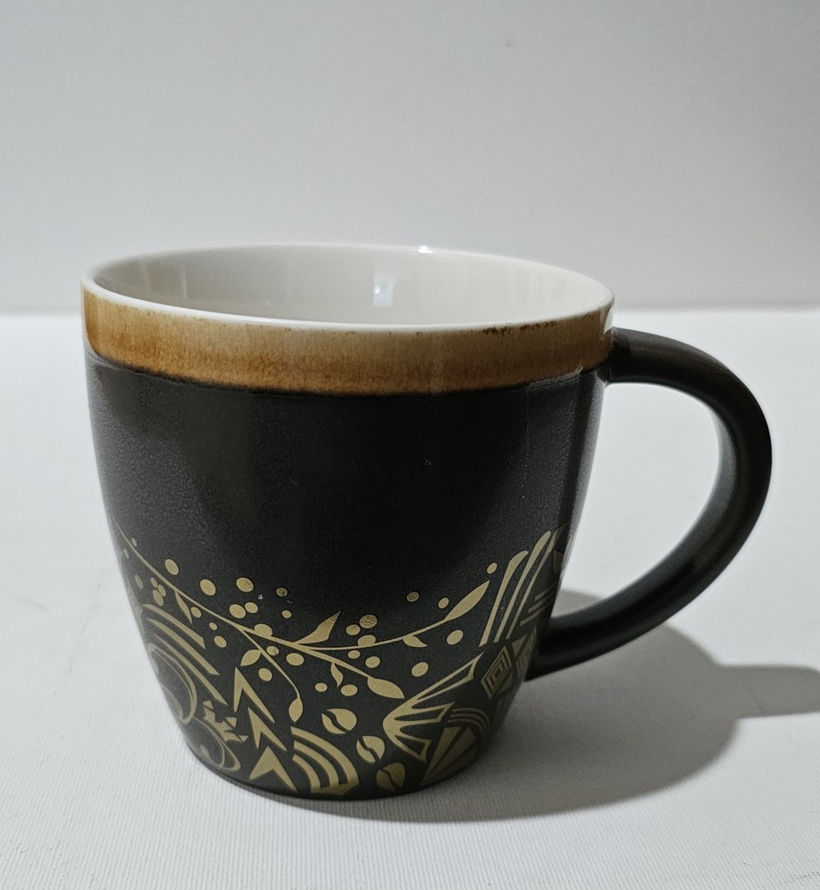 HomeStarbucks Bone China Mug Brown Gold Rim Coffee Bean Leaves Design A54