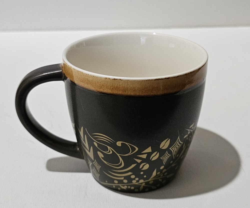 Starbucks Coffee Mug New Bone China Brown & Gold Rim Coffee Bean Leaves Cup 2011