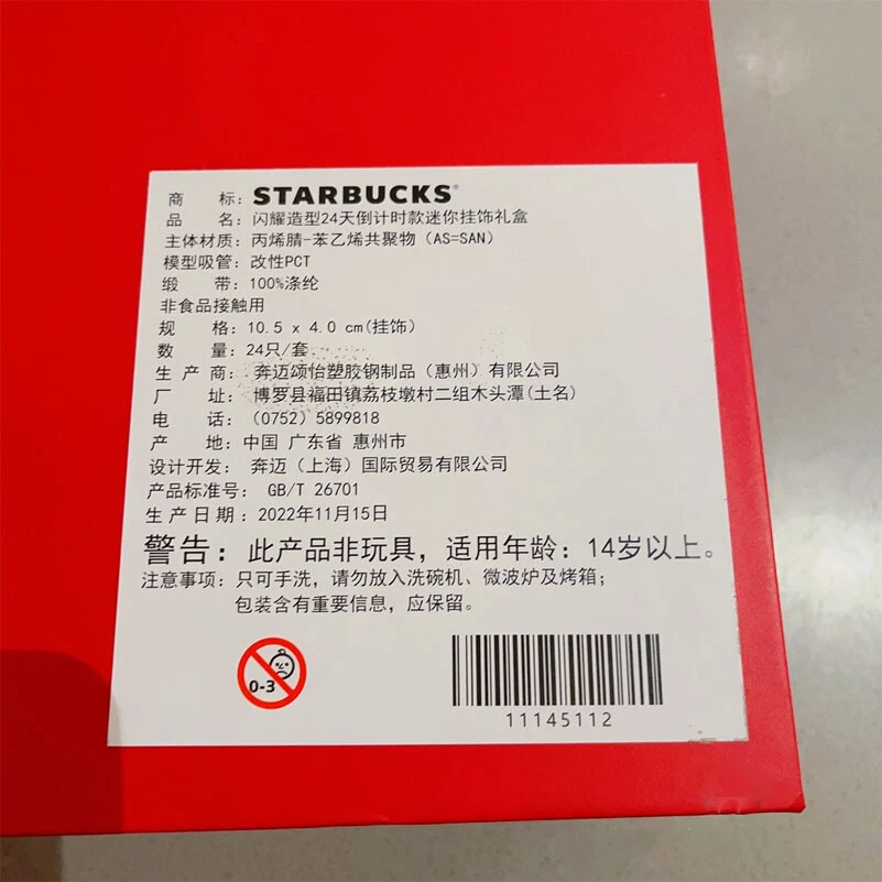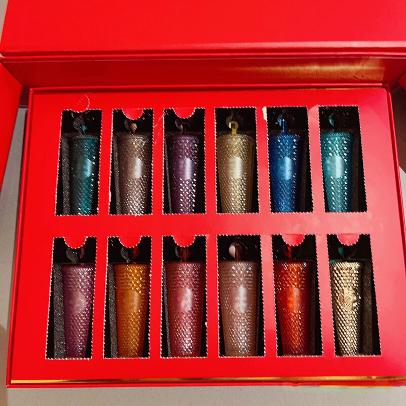 Starbucks China 2022 Xmas 24 PCS Mini Studded Cup Keychain Ornaments W/ Gift Box Limited Edition!!! Great starbucks collection or nice Xmas gift for your friends Condition: original and new in gift box, unopened Released: November, 2022 in Starbucks China Material: AS=SAN Each keychain ornament size: about 10.5 x 4.0 cm Quantity: 24pcs / set
