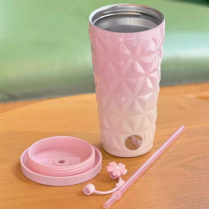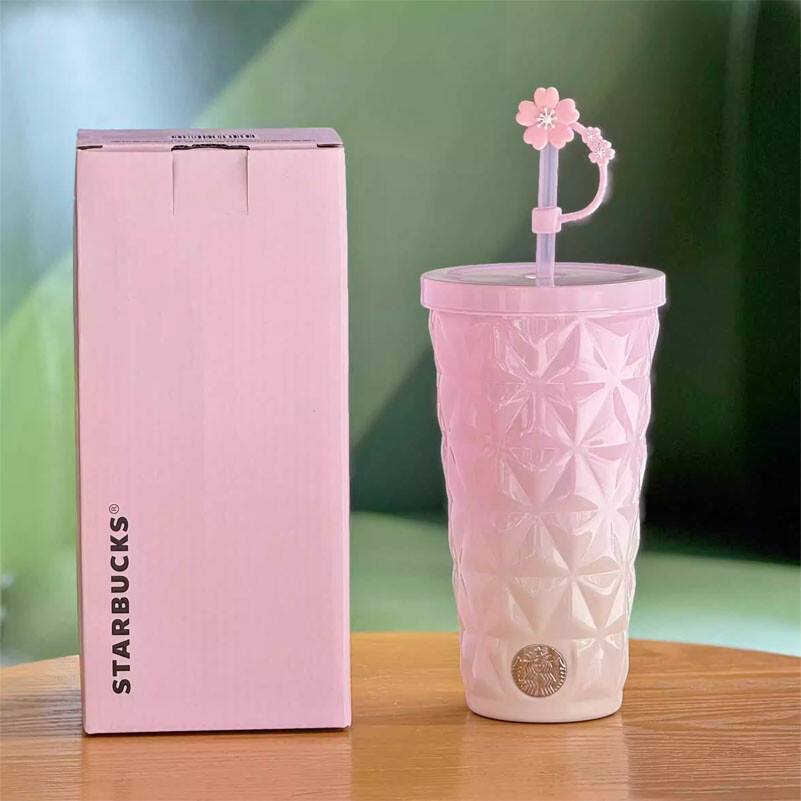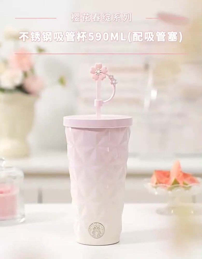 Starbucks China 2025 Spring Sakura Topper Gradual Pink 20oz SS Straw Cup Tumbler Condition: Authentic and new in box Released: Starbucks China / 2025 Design: Vacumn insulated Material: Stainless steel Capacity: 590ml(20oz) Official SKU#: 1114563