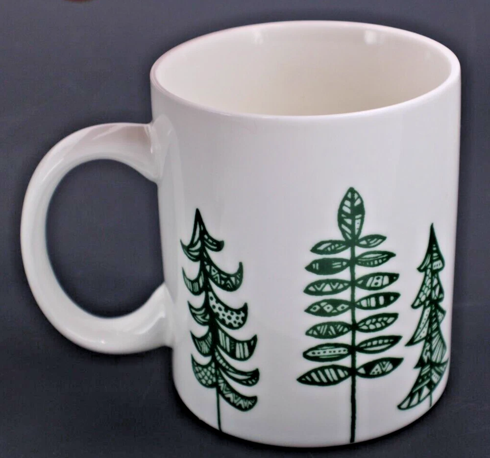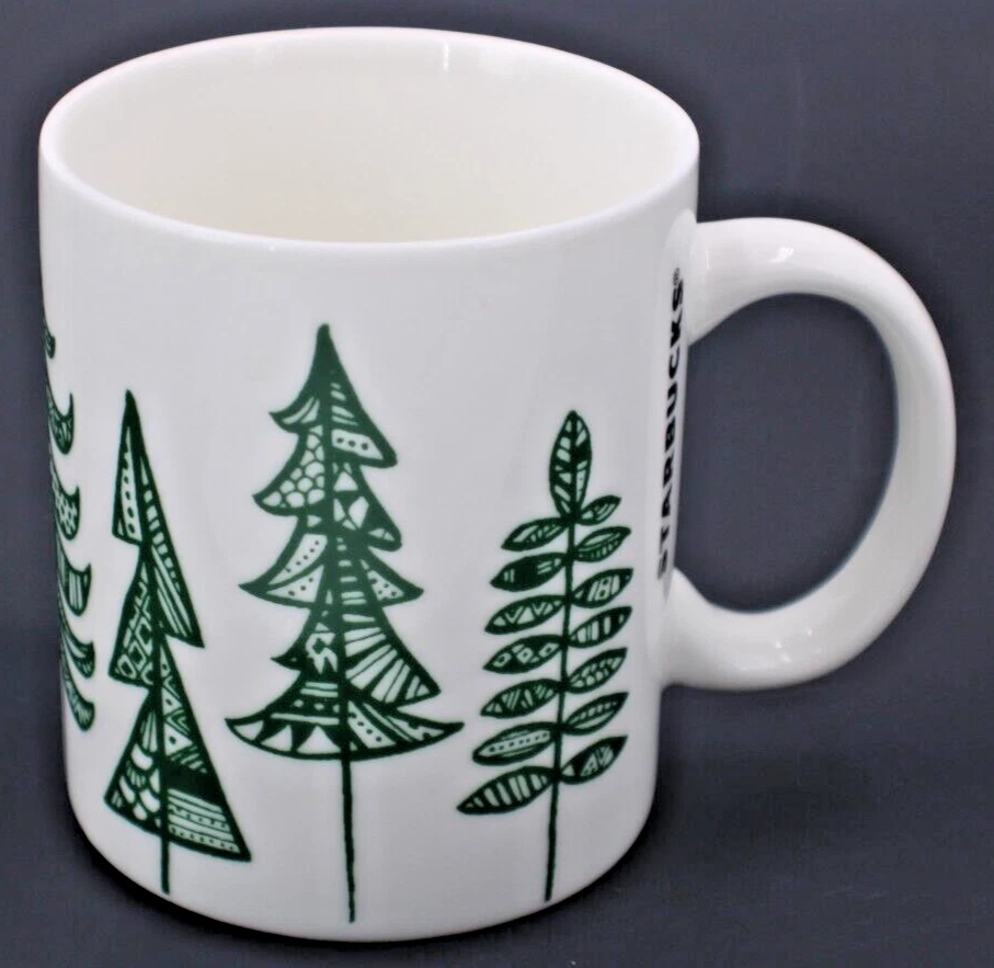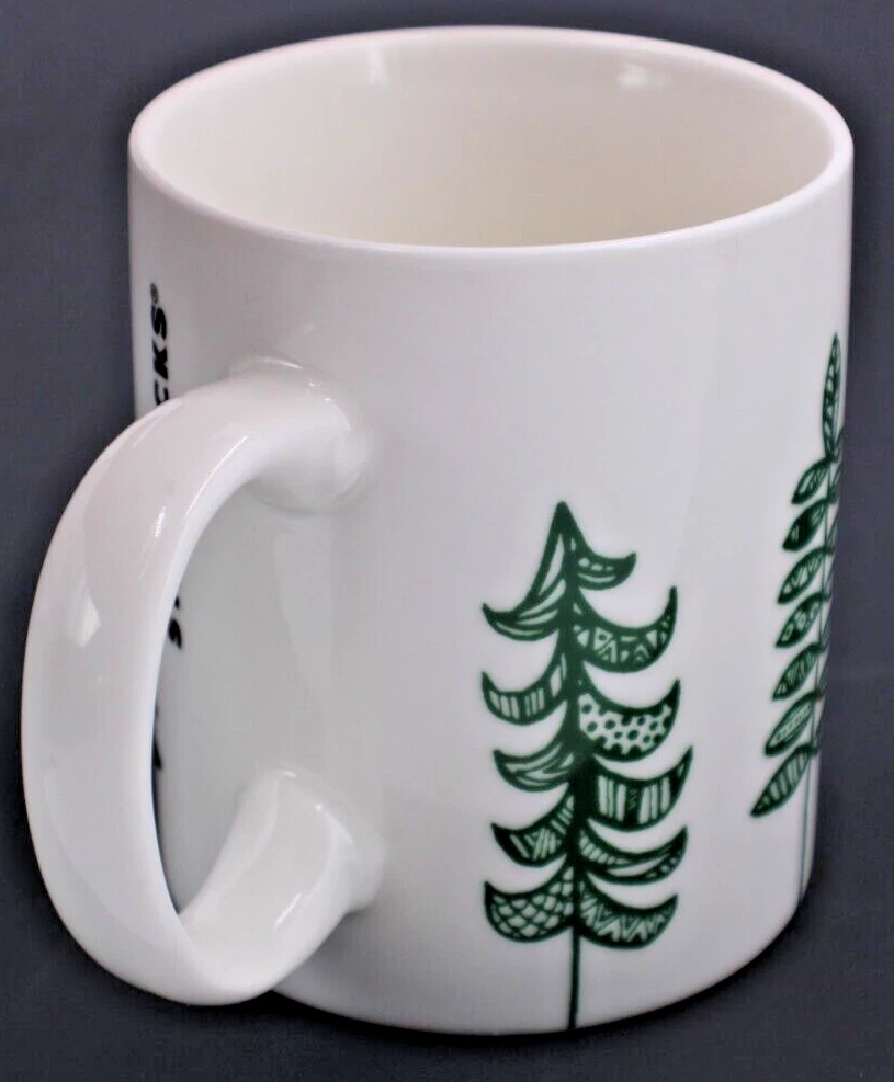 This Starbucks mug is perfect for coffee and tea lovers who enjoy unique and collectible items. The holiday-themed design features white porcelain with green trees, making it a great addition to any collection. Created in 2015 and manufactured in China, this original piece of advertising is a must-have for fans and collectors of the Starbucks brand. The mug holds 12 oz of your favorite beverage and is in excellent condition. See photos for details