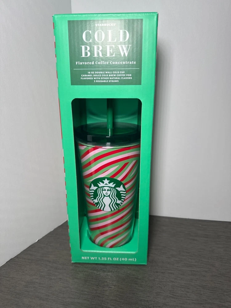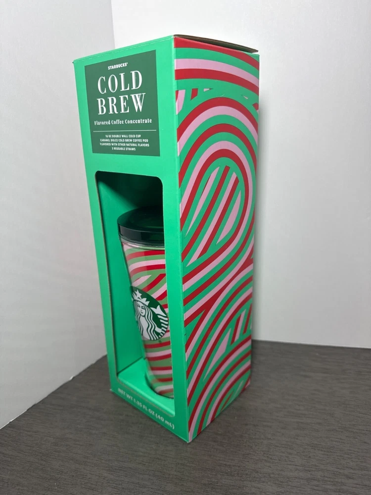 16oz double wall cold cup Carmel dolce cold brew coffee pod 3 reusable green straws Pink,green,red Condition: New