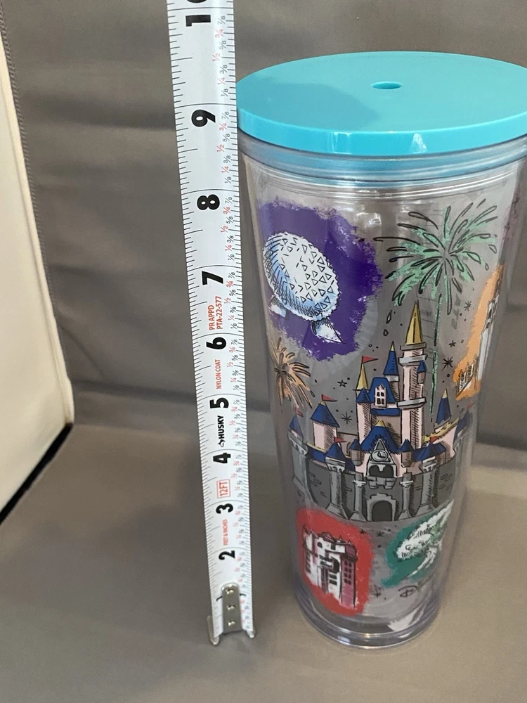 The Starbucks Disney Parks Disney Acrylic Cold Cup Tumbler is a 24 oz tumbler featuring a design inspired by Disney Parks. Released in 2019 as part of the Disney x Starbucks collaboration, this cup showcases the iconic Starbucks brand along with beloved Disney characters and themes. Made in the United States, this collectible item is perfect for fans of both Disney and Starbucks looking to add a unique piece to their collection. This tumbler offers a convenient and stylish way to enjoy your favorite beverages while showcasing your love for both Starbucks and Disney.No Straw