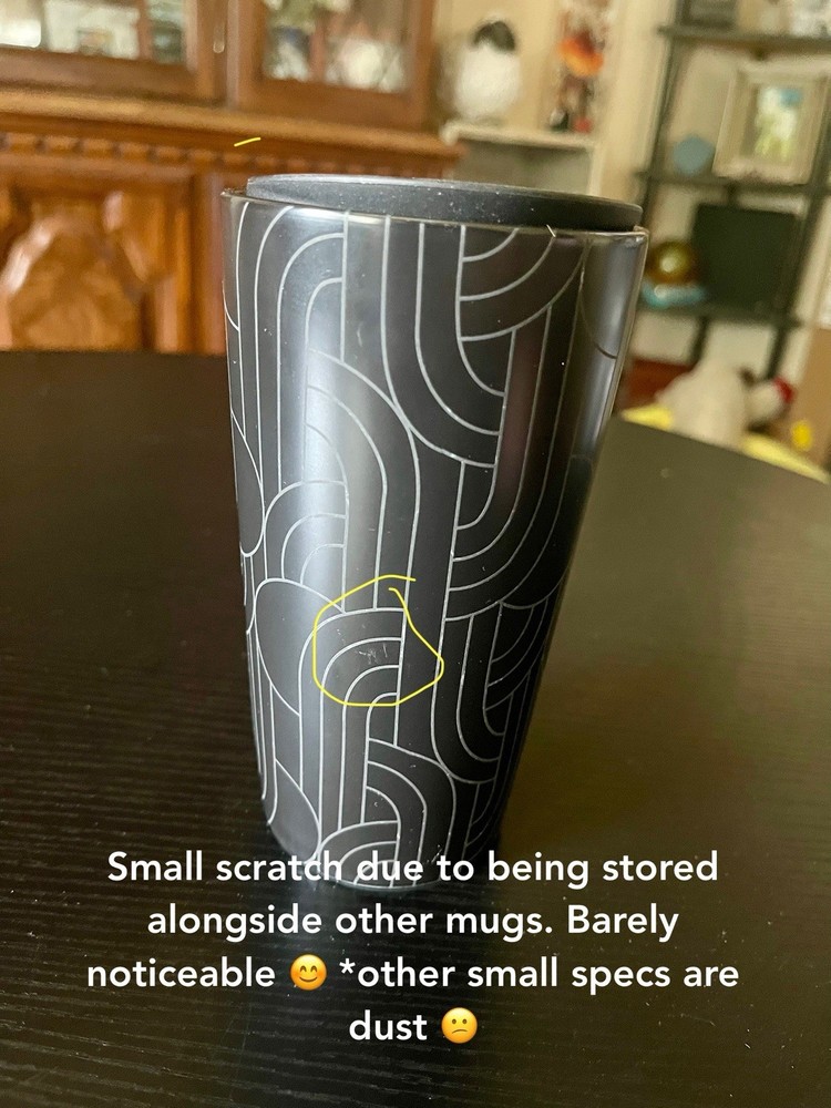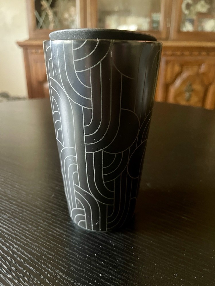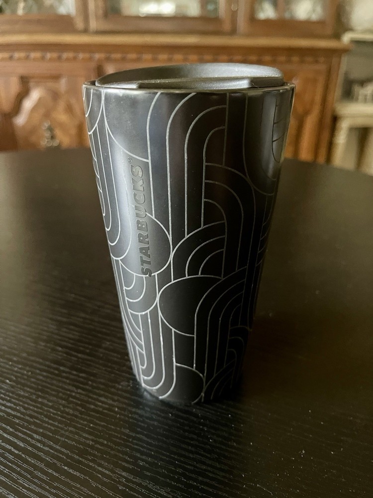 BLACK GEOMETRIC GEO ETCHED 12 OZ. CERAMIC TUMBLER Made By STARBUCKS in 2020!! Released in Fall / Halloween 2020. This Limited Edition Ceramic Tumbler Style is Rare and Hard to Find! Sold Out Fast!! Starbucks made this Mug to Celebrate the 2020 Fall / Halloween Season. It's Black in Color and Features a Geometric Print on the Outside! This Handleless Mug Comes with a Reusable, Splash Guard Lid that is Black in Color!! The Perfect Cup for your Coffee or Tea!! Fits in most cup holders!! Has been collected for 5 years now! 😊 Comes Brand New, with the Starbucks Item Sticker Attached to the Bottom! *there is a small scratch on this mug. Please refer to images for more information. Always feel free to message if you have questions. 😇