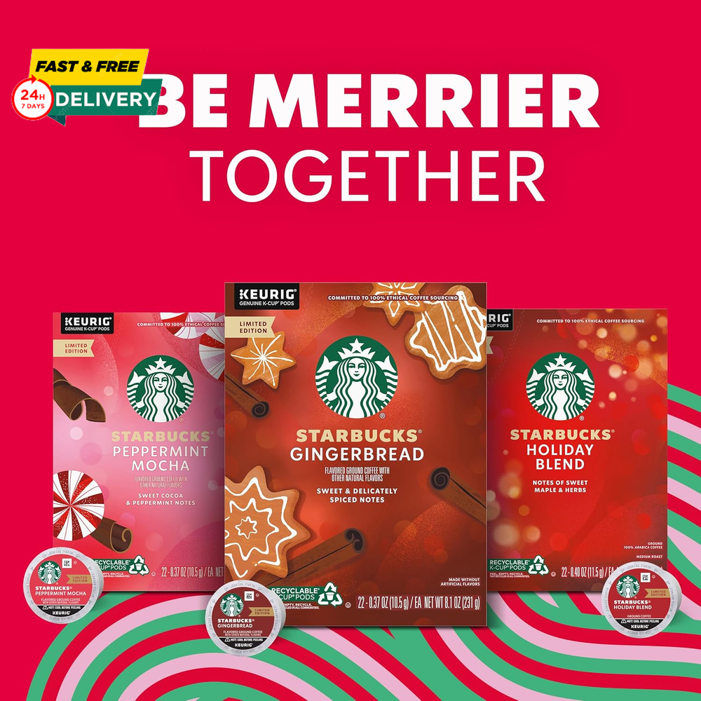 Menu Other Items Feedbacks About Us Contact Us Add To Favorites Starbucks Flavored K-Cup Coffee Pods — Peppermint Mocha for Keurig Brewers — 1 Box (10 Pods) PREMIUM COFFEE IN A K-CUP POD: Celebrate the season with Starbucks Peppermint Mocha Naturally Flavored Coffee—this holiday gift brings the tastes of the season home in this box of 10-count K-Cup pods that makes the perfect white elephant gift for adults PEPPERMINT MOCHA NATURALLY FLAVORED COFFEE: Peppermint and mocha swirl together in this festive, naturally flavored coffee that's a must-have for the season CAFÉ QUALITY: Starbucks adheres to the highest quality standards—shipping you the same carefully roasted 100% arabica coffee beans we brew in our cafés LIMITED-TIME EXCLUSIVE: Unwrap limited-edition holiday coffees, like our Starbucks Peppermint Mocha Naturally Flavored Coffee, Starbucks Holiday Blend or Starbucks Gingerbread Naturally Flavored Coffee ETHICALLY SOURCED: We’re committed to offering ethically purchased and responsibly produced sustainable products of the highest quality Celebrate the season with holiday favorites that bring warmth and cheer to your cup. These Starbucks Peppermint Mocha K-Cup Pods are a naturally flavored, heartwarming treat that features rich chocolaty notes and pure minty joy. Together, our lightest roast and winter’s celebrated flavors create a festive sip with just the right amount of sweetness. Whether you like your coffee black or adding a flavorful coffee creamer or coffee syrup, this holiday seasonal is a festive favorite you'll love. Indulge yourself this season or stock up on holiday gifts everyone will love. From ground coffee and whole beans to holiday coffee K-Cup pods and flavored delights, let's be merrier together. But hurry, this limited-edition favorite will be gone before you know it. Nestlé uses Starbucks trademarks under license. Keurig and K-Cup are trademarks of Keurig Green Mountain, Inc., used with permission. Item Specification Roast Level Medium Roast Product Dimensions 4 x 6 x 4 inches; 5.6 ounces Caffeine Content Description Caffeinated Units 60 Count Flavor Mocha,Peppermint Mocha Item Form Pod Brand Ogefine Manufacturer Starbucks Coffee Dimensions Shipping Returns Additional Info Product Dimensions: 6.0 inches x 4.0 inches x 4.0 inches. Weight: 5.6 oz Fast shipping is very important for us. Our standard shipping service is FREE. Your order will be shipped within 1-3 business days upon full payment received. Most items are delivered within 3-5 business days, however, please allow 3-10 business days. We are shipping only to USA. We only ship to the confirmed Paypal address. We reserve the right to cancel any order for any reason at any time. We are not responsible for undeliverable addresses. We offer a 30 day return policy from checkout winning date. Your satisfaction is guaranteed! If for any reason you are unhappy with your item, just return it within 30 days for a full refund, minus shipping cost. Please contact us prior to initiating a return so that we can issue you a refund authorization. Items defective upon receipt must be packaged in their retail packaging as if new and returned with a detailed description of the problem. Return shipping fees are not refundable. We reserve the right to decline any returns if the above guidelines are not followed. All of our items, unless otherwise stated, will only run on 120 volts. Please check to make sure your country complies with these specifications. If you have a problem or question regarding your transaction please contact us before leaving any type of feedback. We will work with you to resolve any problem you may have.