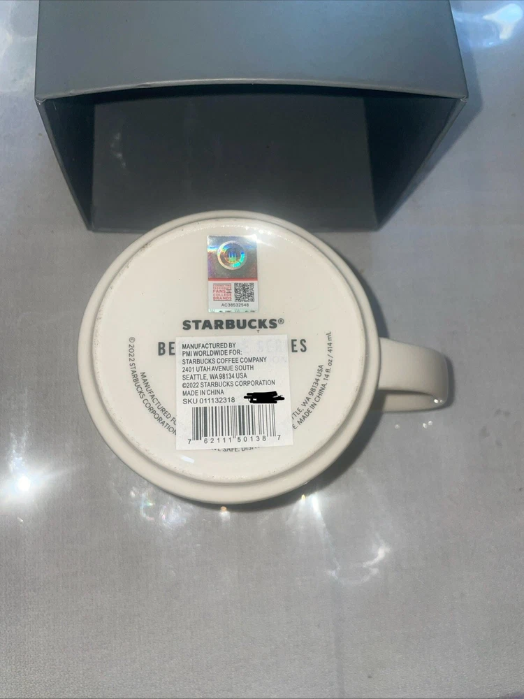 The product is a Starbucks 14oz mug from the Been There Series Campus Collection featuring Fresno State Bulldogs. The mug is multi-color and was created in 2022. It is an original piece of advertising for Fresno State, incorporating a coffee & tea theme. The mug comes in a special box for the collection.