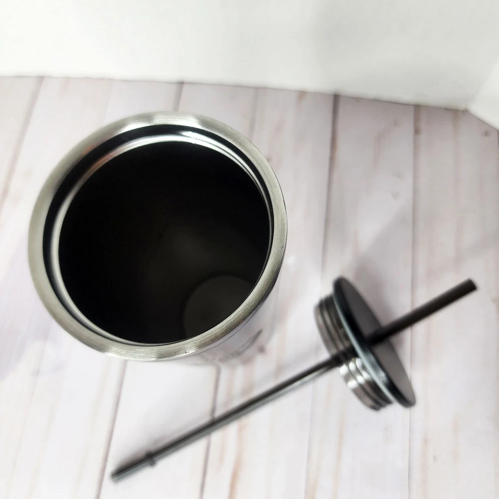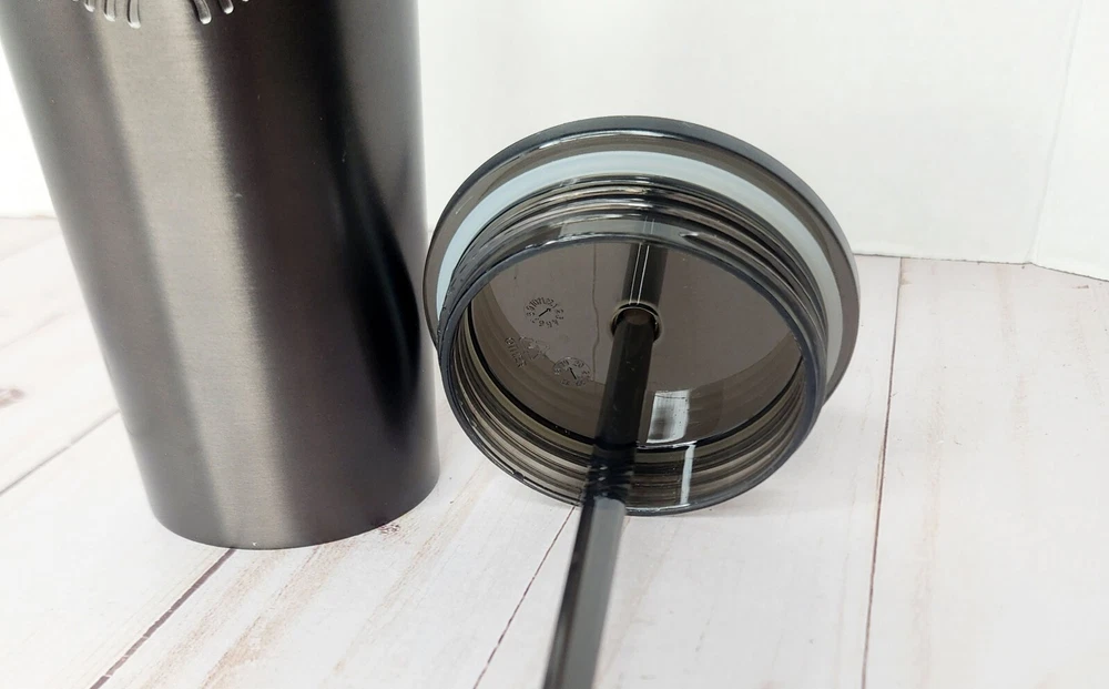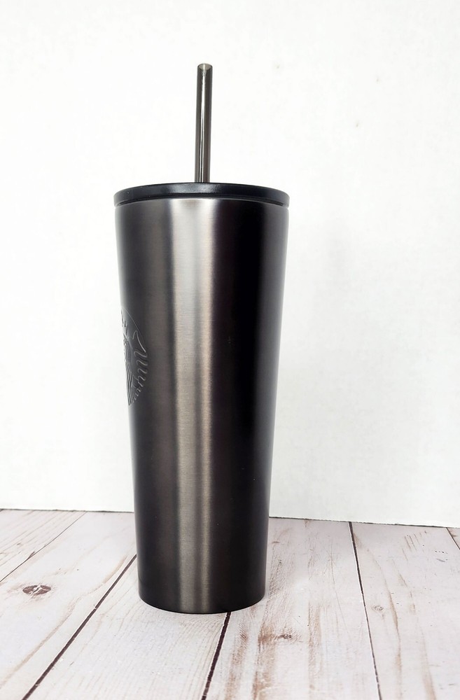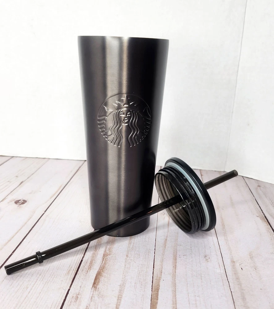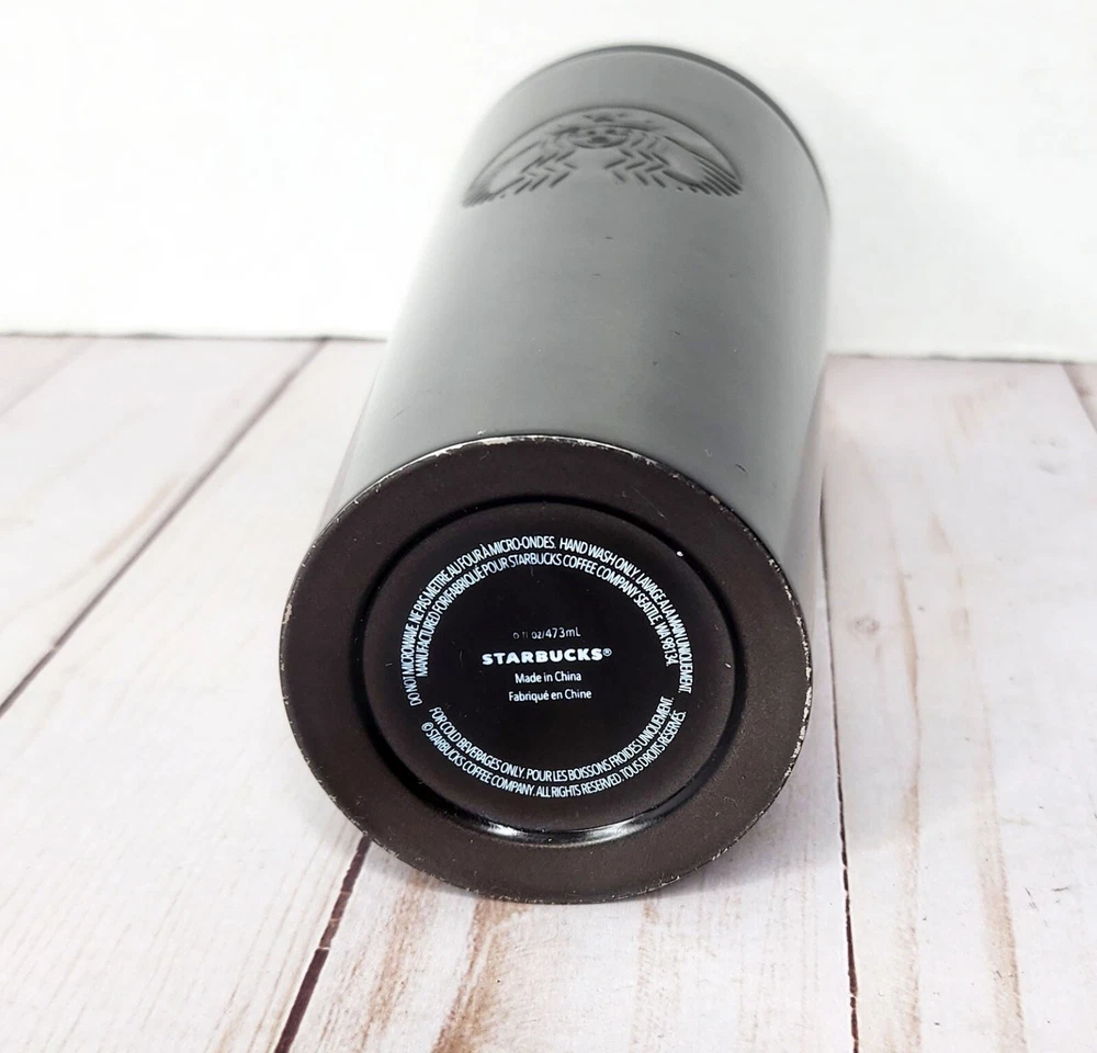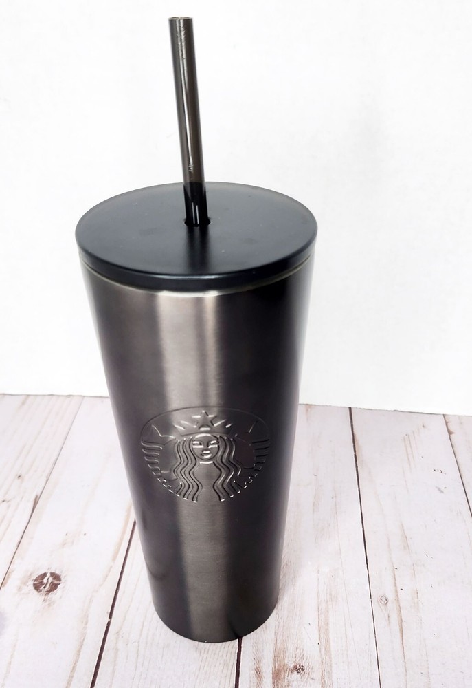 Starbucks Dark Gray Gunmetal Embossed Siren Stainless Steel Cold Cup Tumbler Excellent pre-owned condition With straw and lid Metal 16 oz/473 ml 5-4136