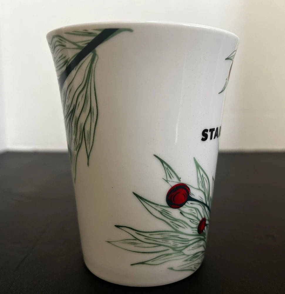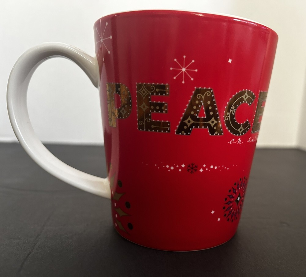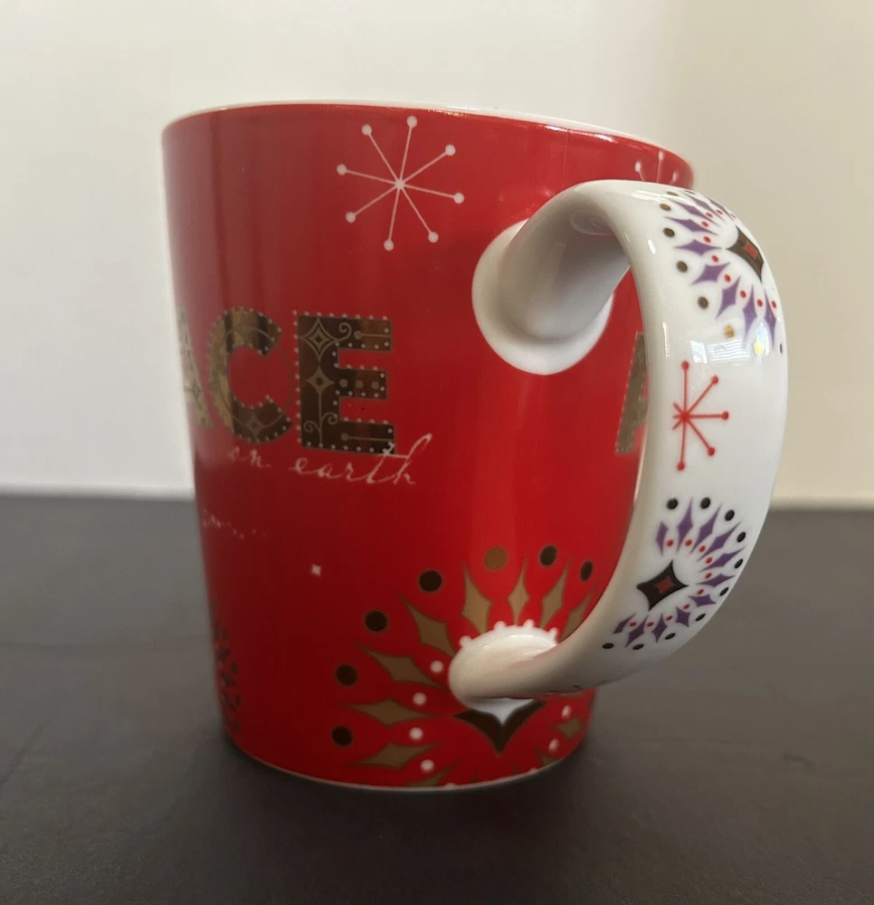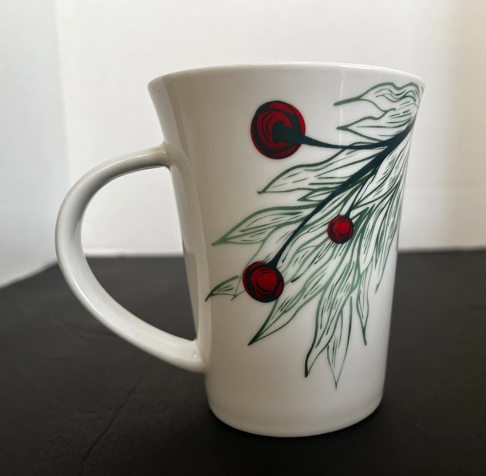 This is a set of two Starbucks holiday/Christmas cups or mugs, the red Peace mug, a rare find from 2006, hand wash only, and the red, green and white Holly Berry pine from 2020 which is microwave and dishwasher safe. These are original pieces and perfect for collectors of coffee and tea accessories. The mugs are branded with the Starbucks logo and are ideal for enjoying your favorite hot beverage during the holiday season. Add them to your collection of Starbucks merchandise or give them as a gift to a fellow coffee lover. No cracks, chips; good used condition.