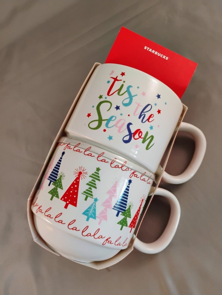 Enjoy your favorite hot beverage with these Starbucks Happy Holidays Stackable Mugs. The mugs feature a classic white color and are adorned with festive holiday designs. These original Starbucks mugs are perfect for collectors or anyone who loves coffee or tea. They are also great for advertising and food and beverage themed collections. The mugs are stackable, making them a space-saving addition to your mug collection. Get into the holiday spirit with these charming Starbucks Happy Holidays Stackable Mugs.