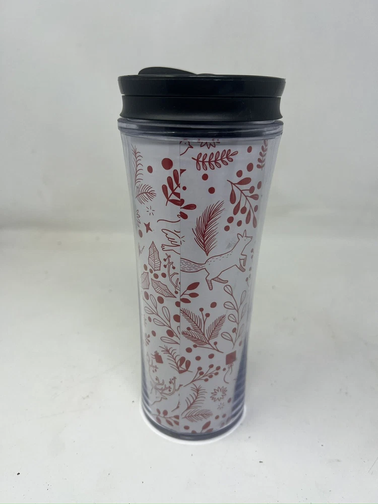 Starbucks Holiday Tumbler Cup 2018 16 oz White & Red Dove Reindeer Fox Christmas