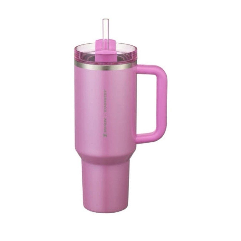 This limited edition Starbucks tumbler is a must-have for any coffee or tea lover! Collaboration with SS Stanley, this tumbler comes in a hot pink color with a love theme. It has a capacity of 1183ml (40oz) and features the Starbucks brand name. Perfect for collectors, this original and authentic tumbler is a great addition to your collection. Whether you're a fan of coffee or tea, this tumbler is perfect for you. Get your hands on this unique and stylish tumbler today!