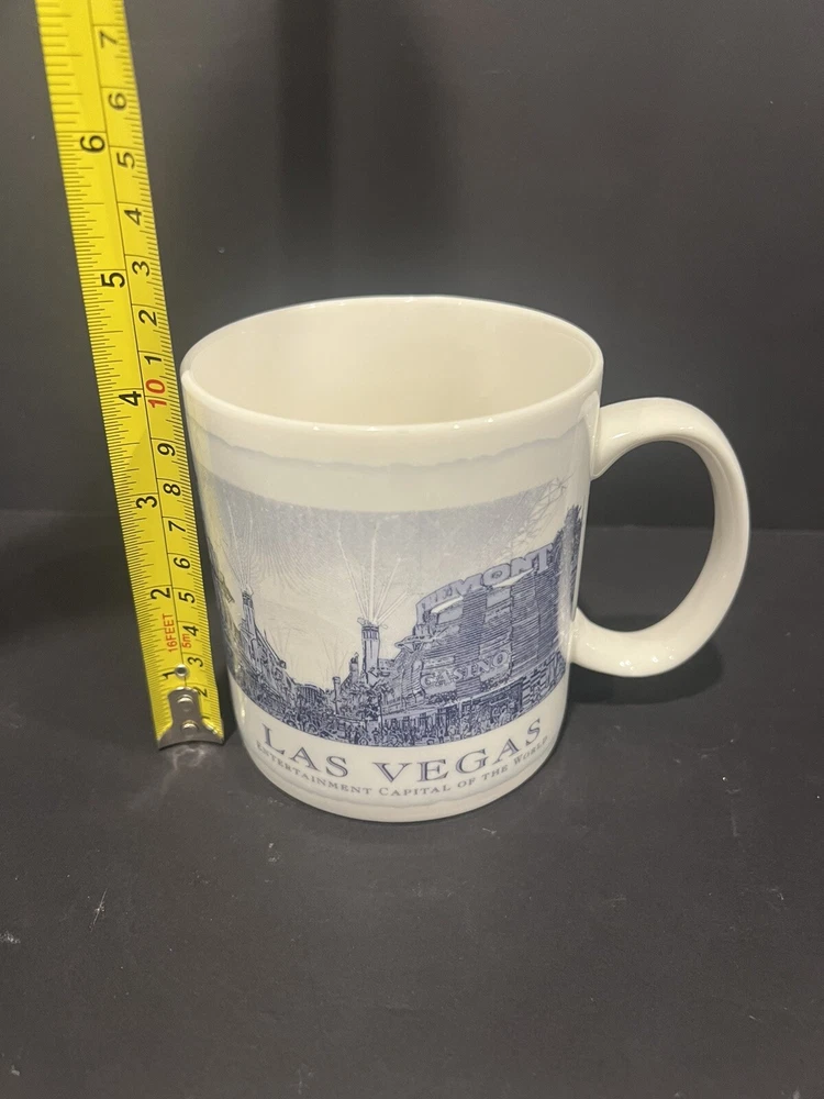 Absolutely love this Starbucks Las Vegas mug! The blue and white design is classic and vibrant, showcasing the city’s iconic architecture. It’s in perfect condition—no chips or cracks—and holds a generous 18 oz. A must-have for collectors or anyone who enjoys a stylish coffee experience. Feels sturdy and looks great on display!