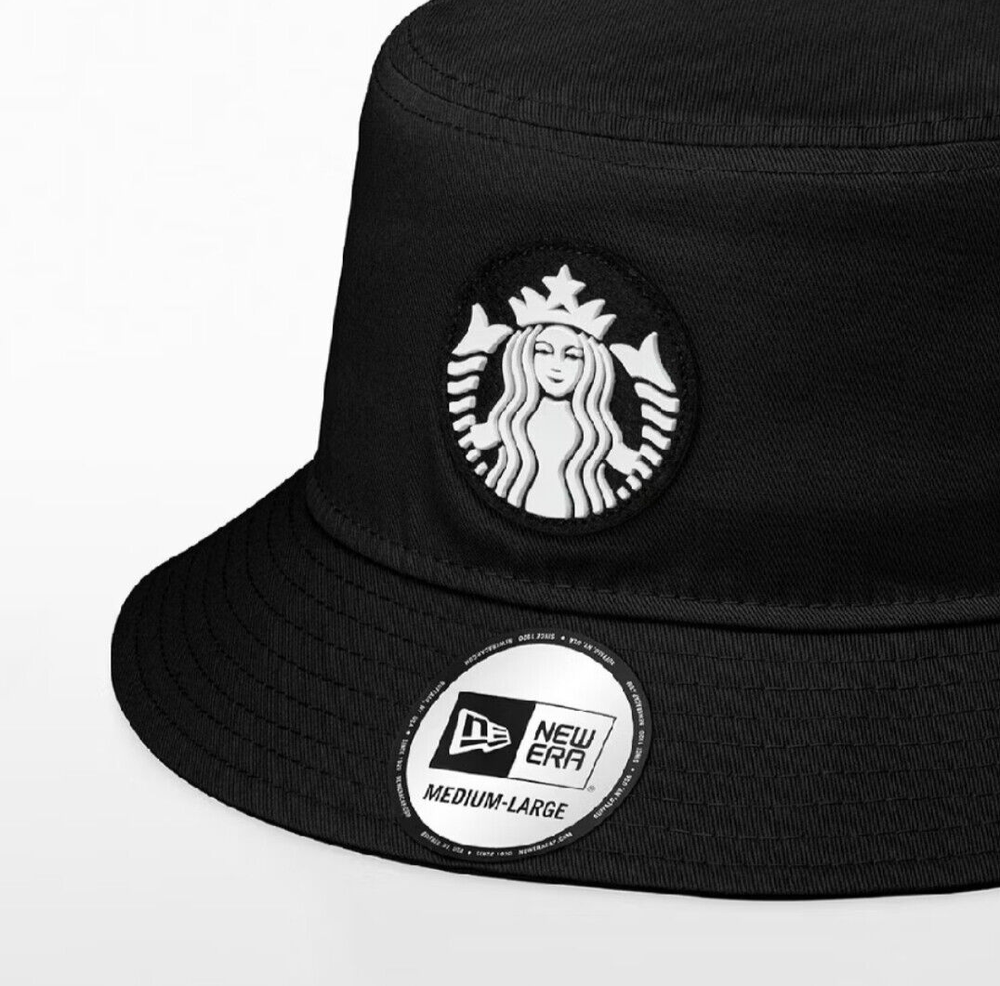 Starbucks New Era Black Bucket Hat Brand New Description Condition: Brand New Brand: Starbucks Size: 28 x 28 x14 cm, 59 cm head circumference Quantity: 1 pc Shipping : 5-8 Days AIRMAIL with Tracking number to all of our packages to ensure that it arrives to you safely Product Details - Original Licensed Product - Spot clean with damp cloth - Made from 100% cotton