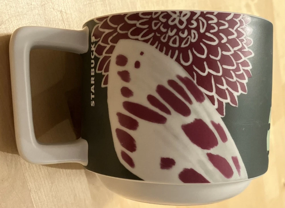 Starbucks Oversized Coffee Mug Zen Garden Butterfly Chrysanthemum Floral Tea Starbucks Fall 2019 Oversized Coffee Mug Limited Edition Butterfly Chrysanthemum Pattern: "Flora." Item: Mug. (May be used for coffee, coffee drinks, tea, hot chocolate, etc.) Measurements Approx.: Height 3.5". Diameter (across opening) 3.75". Capacity: 12 fl. oz. (stamped on bottom of mug). Description: Chrysanthemum or mum flowers with close-up views of butterfly wings. Condition: No chips, cracks, or stains noted. Pre-owned. See photos for condition details.