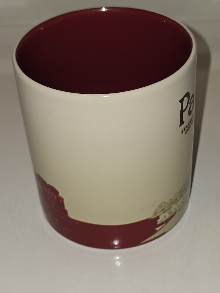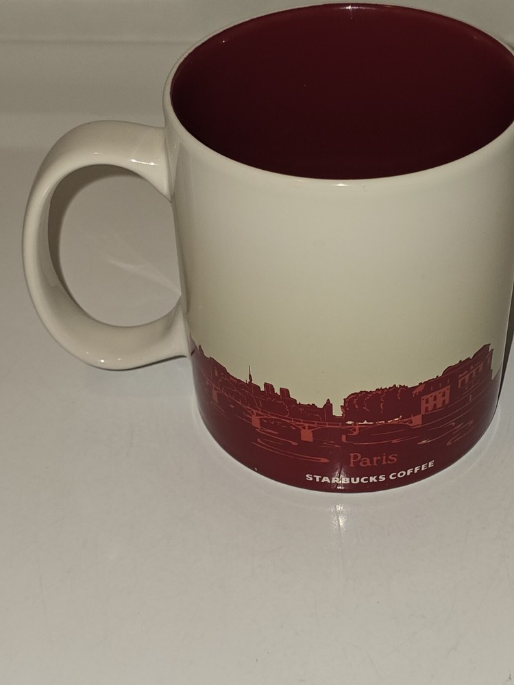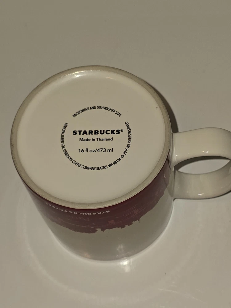 Add a touch of Parisian flair to your morning routine with this Starbucks 16 oz Global Icon City Collectors Series mug. Featuring the iconic Eiffel Tower and the words "Paris" and "Coffee," this red mug is perfect for any coffee or tea lover who wants to bring a piece of the French capital into their home. Made in Thailand and part of the original 2016 collection, this mug is a must-have for any serious Starbucks collector. Whether you're sipping your favorite beverage or simply displaying it on your shelf, this mug is sure to impress. Pre-owned in excellent condition. No Chips or Cracks