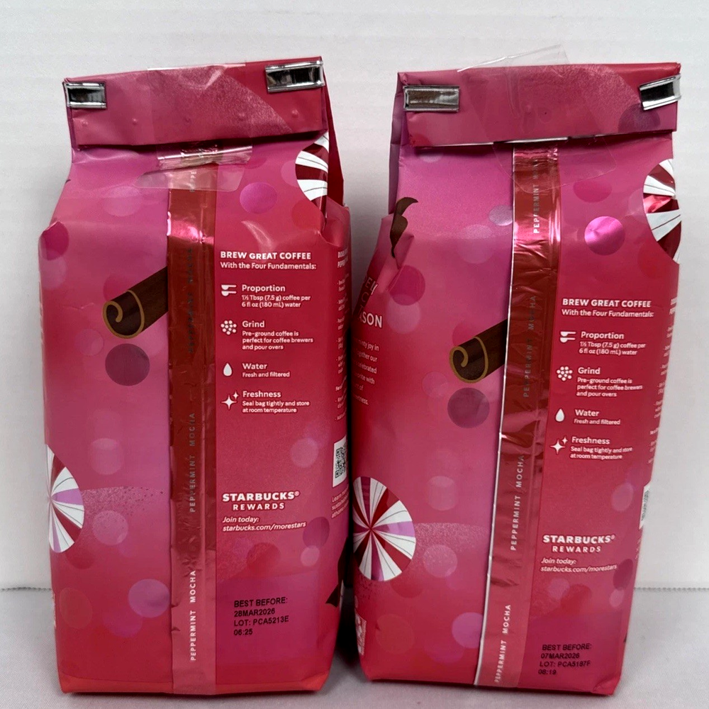 Starbucks Peppermint Mocha Ground Coffee Light Roast 11 oz 2 Bags LIMITED TIME Sealed New! Free Shipping! Thanks for looking!