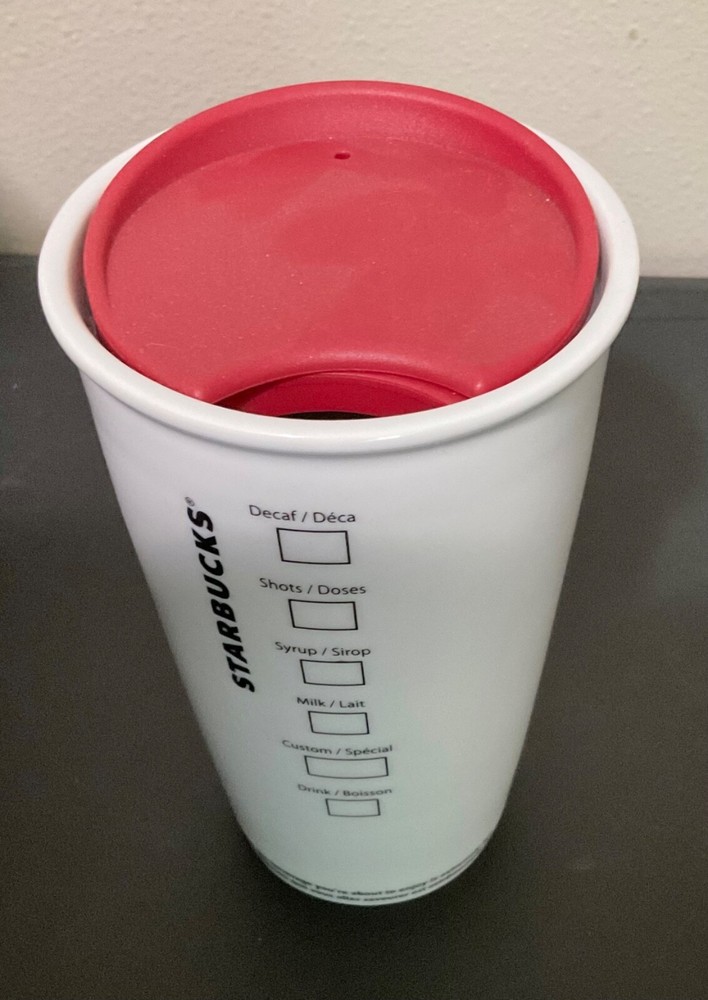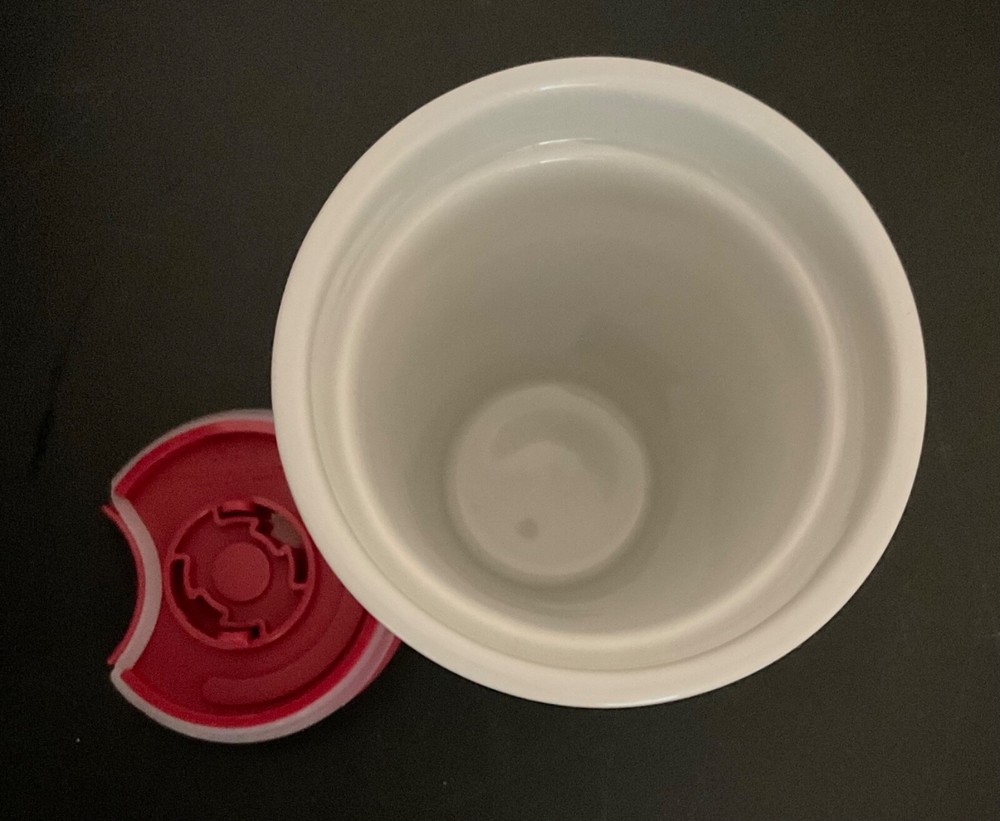 Elevate your coffee experience with the sleek Starbucks Siren Coffee Travel Mug. Crafted from high-quality ceramic, this white travel cup features a vibrant red lid, making it a stylish and practical accessory for any coffee or tea lover. The iconic Starbucks branding ensures that your beverage stays hot and fresh on the go. The mug was first introduced in 2011 and remains an original piece, showcasing the timeless design that Starbucks is known for. With its 12oz capacity, it's perfect for your morning caffeine fix or as a thoughtful gift for the coffee enthusiast in your life. Whether you're commuting or simply enjoying a cup at home, this travel mug brings convenience and style to the table.