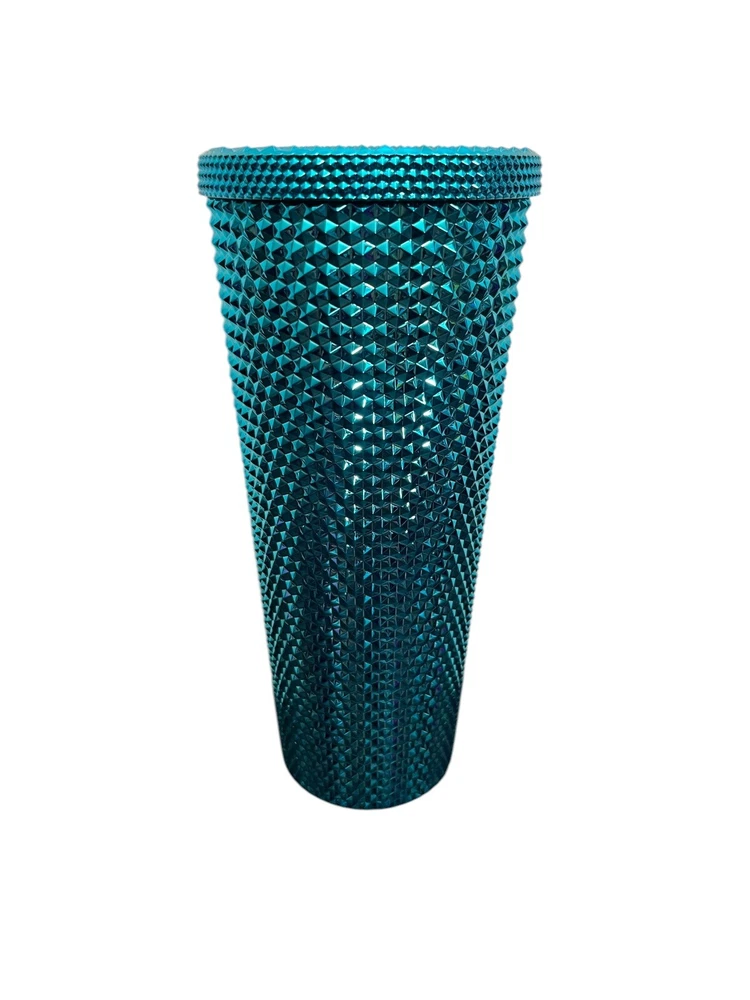Starbucks Summer 2023 Metallic Chrome Teal Blue Bling Studded 24 oz. Tumbler NEW