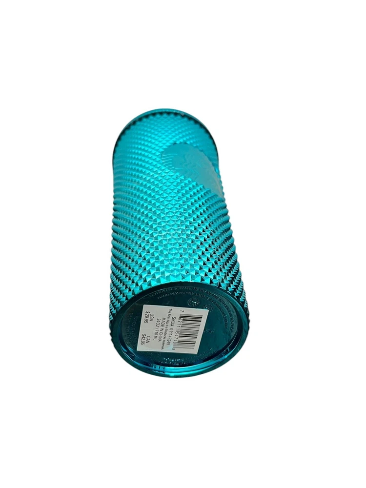 HomeStarbucks Summer 2023 Metallic Chrome Teal Blue Bling Studded 24 oz. Tumbler NEW