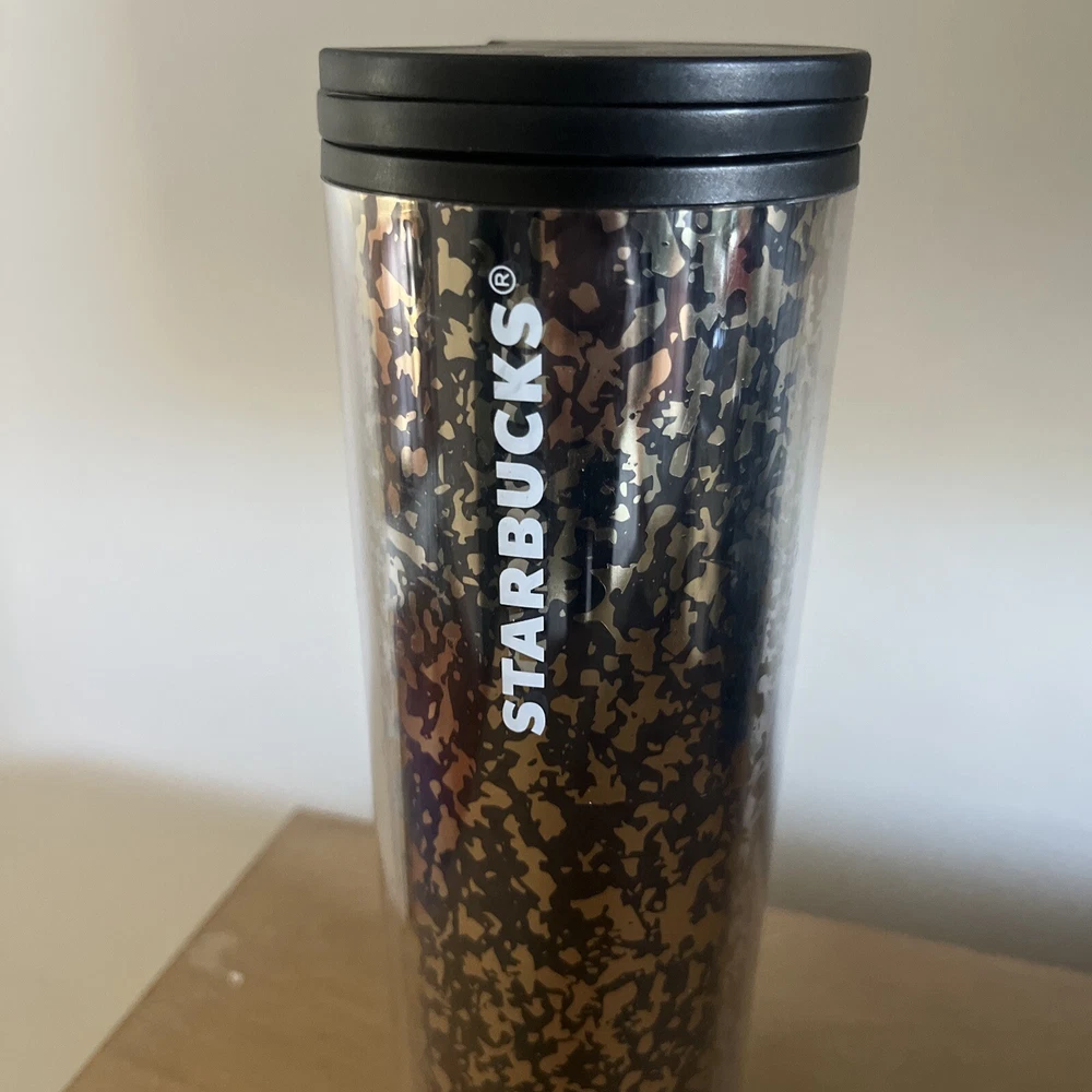 Starbucks Travel Tumbler Coffee Hot Cold Black Gold Flakes 16oz Holiday 2019
