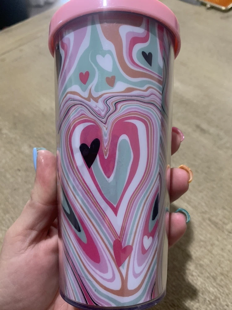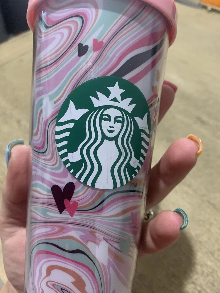 Size 12oz or 355ml The Starbucks Valentines Swirl Heart Large Tumbler is a delightful addition to any coffee lover's collection. With its pink design and included lid and straw, this pre-owned tumbler is perfect for sipping on your favourite hot or cold beverages in style. Emblazoned with the iconic Starbucks logo, this collectable item is a must-have for fans of the brand. Add a touch of charm to your coffee or tea routine with this unique piece.