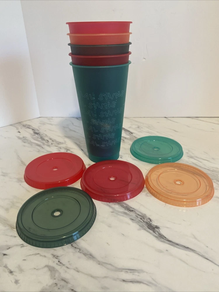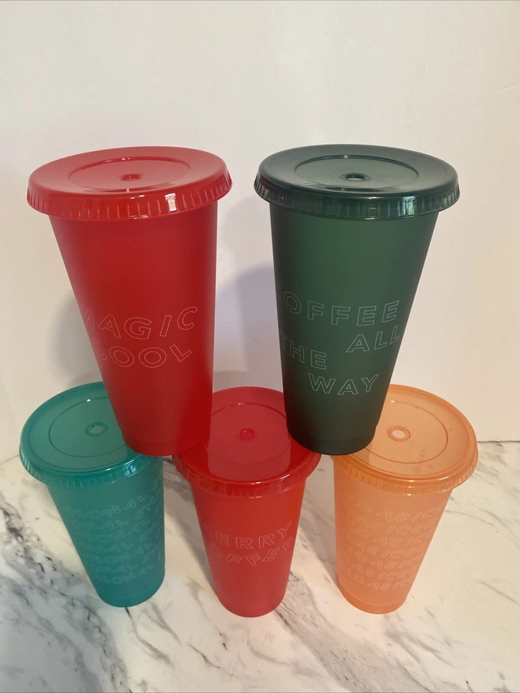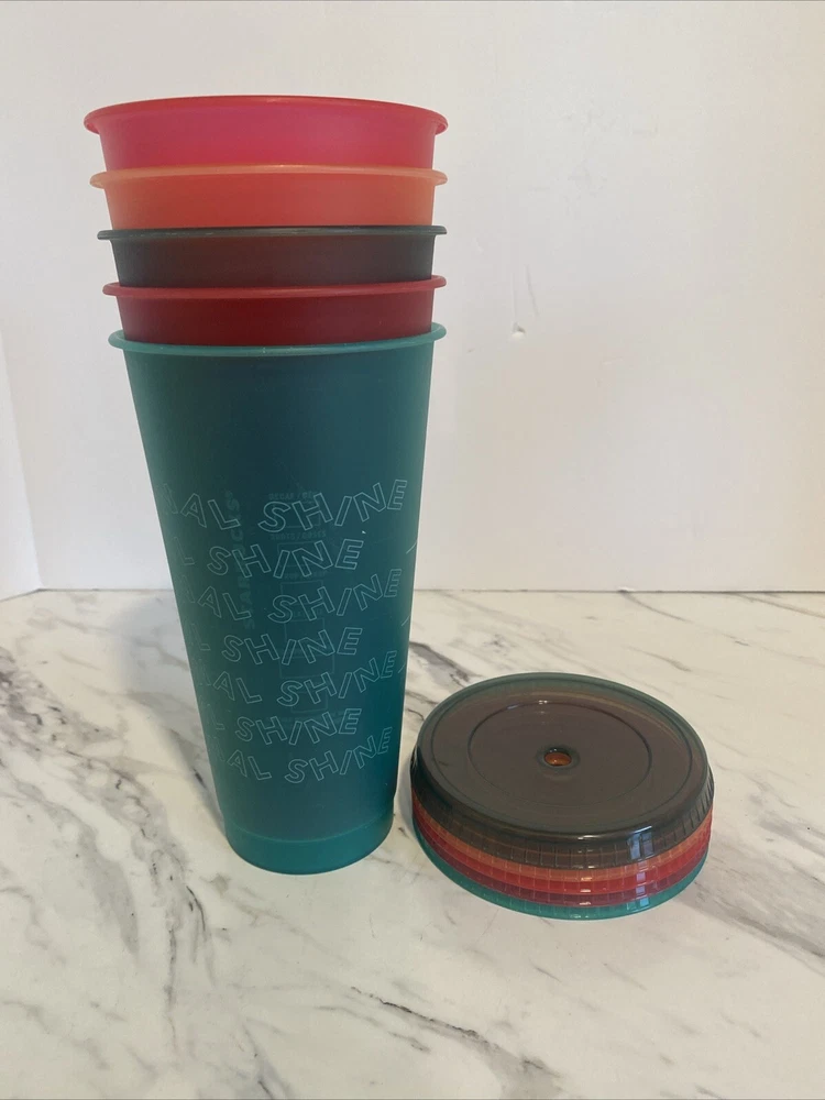 Lot 5 Starbucks Plastic Cups Reusable Holiday Christmas Stackable With Lids Pre-Owned but in very good condition. See photos for best representation. This set DOES NOT include straws. For cold beverage only. Thank you for looking and supporting my small business!