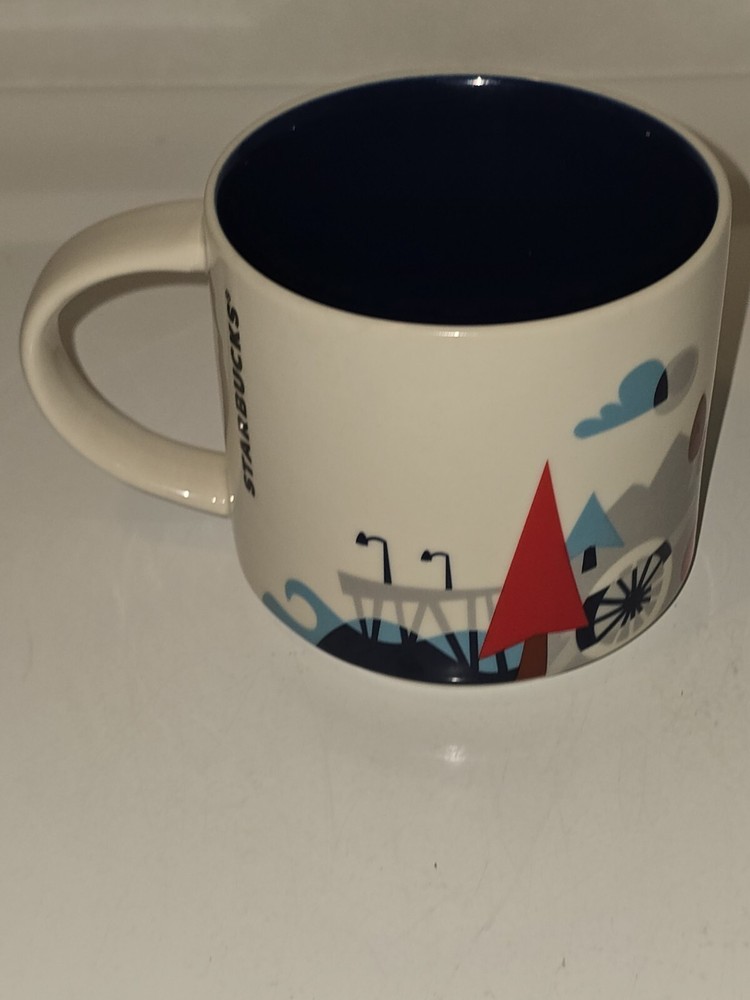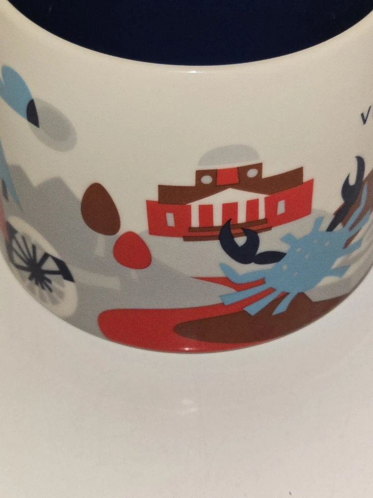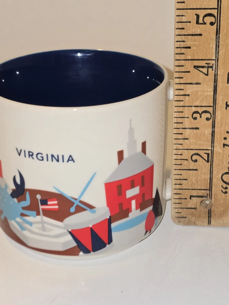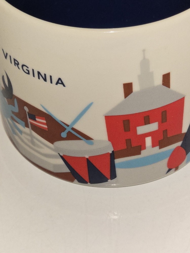 The Starbucks You Are Here Collection Virginia 14oz Collectible Coffee Mug Cup 2015 is a multi-colored original Starbucks mug with a capacity of 14 ounces. The mug features advertising for Virginia and was created in 2015. It is a collectible item and is manufactured in China.