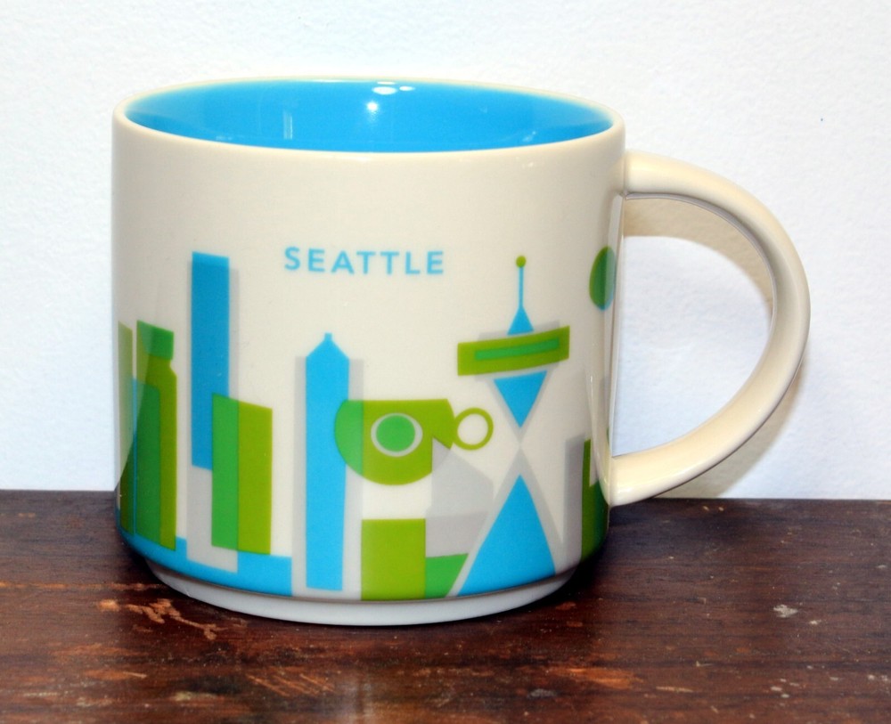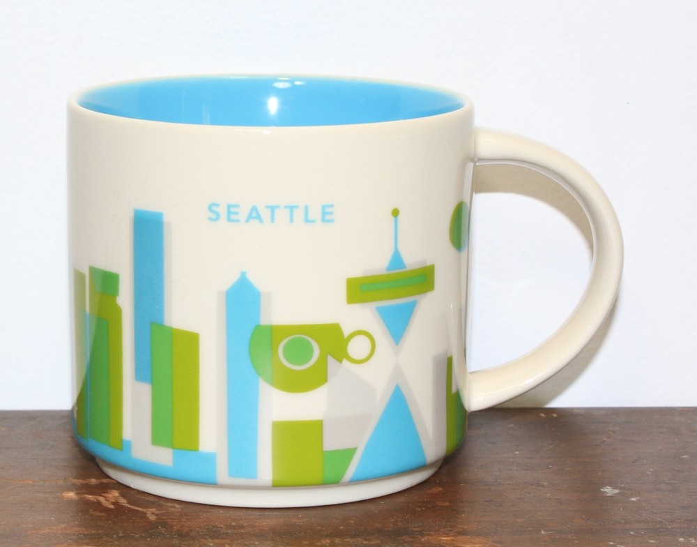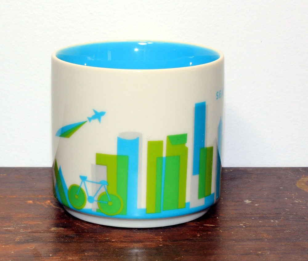 This Starbucks coffee mug is the perfect addition to your collection! Featuring the beautiful city of Seattle, Washington, this 14 oz mug is part of the You Are Here series. The colorful design showcases the iconic landmarks and scenery of the city, making it a great gift or souvenir for any coffee lover. The mug is an original and has not been modified, making it a true gem for any Starbucks or coffee memorabilia collector. Excellent; no chips, cracks, or stir marks Please check out our entire Starbucks collection--we will make a deal if you buy multiple mugs FREE SHIPPING!!!