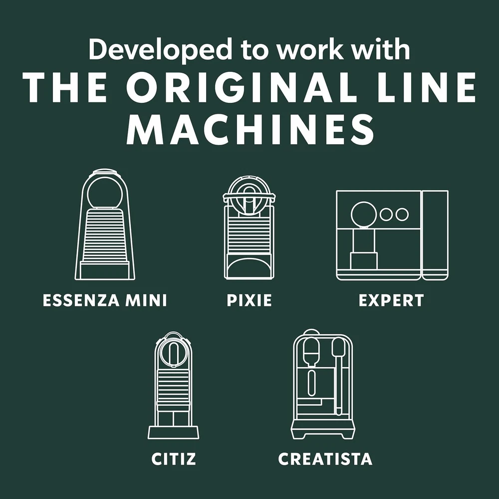 Starbucks by Nespresso Original Line, Decaf Espresso, 10 Count (Pack of 5) Product Details Product Dimensions : 13 x 5.81 x 1.56 inches; 10.05 ounces Manufacturer : Starbucks by Nespresso Units : 50 Count Brand: Starbucks Item Form: Pod Flavor: Decaf Espresso Caffeine Content Description: Decaffeinated Roast Level: Dark Roast Developed with Nespresso to work perfectly with original line Nespresso machines: Essenza Mini, Pixie, CitiZ, Expert, Lattissima, KitchenAid, Creatista Dark-roast pods have fuller body with robust, bold taste Each decaf espresso pod brews 0.85 or 1.35 ounces. Pop in the Nespresso Capsule and select the espresso or ristretto brew size Package contains 5 boxes of 10 Starbucks Espresso Roast Nespresso Decaf Coffee Capsules to make up to 50 cups Espresso Roast is intense, caramelly sweet and perfect with steamed milk. The intensity level of this coffee is 11, a dark roast Enjoy the same high-quality Starbucks coffee you love, now available as decaf espresso pods crafted by Nespresso for a bold and satisfying at-home brew -- without the caffeine. These recyclable aluminum capsules preserve freshness and support sustainability. This decaffeinated blend features beans from Latin America and Asia/Pacific, roasted deep and dark by Starbucks master roasters to unlock rich, caramelly sweetness. With its smooth body and bold flavor, these dark roast pods deliver the taste of classic Starbucks espresso in every cup. Compatible with Nespresso OriginalLine machines including Essenza Mini, Pixie, CitiZ, Expert, Lattissima, KitchenAid, and Creatista.