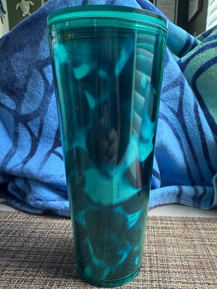 Used cold Starbucks tumbler. Used only a couple of times. Sat in my cabinet mostly. Normal wear and tear on from sitting on multiple surfaces.