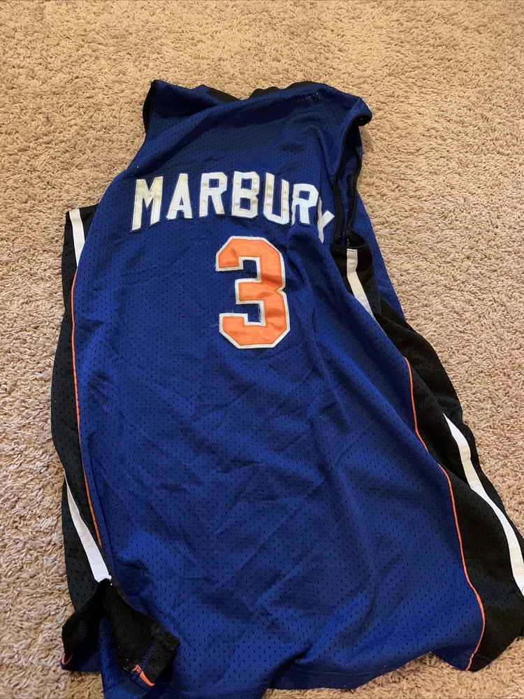 Starbury #3 Basketball Jersey Adult Large Blue Orange Stephen Marbury The item is in used but good condition, and is from a non-smoking home. Shipping is only $2.99 for single shirt purchased. LOVE to combine shipping. Each additional shirt only .50 cents extra. So check out my new store filled with vintage and hard to find t-shirts. Thanks for viewing!