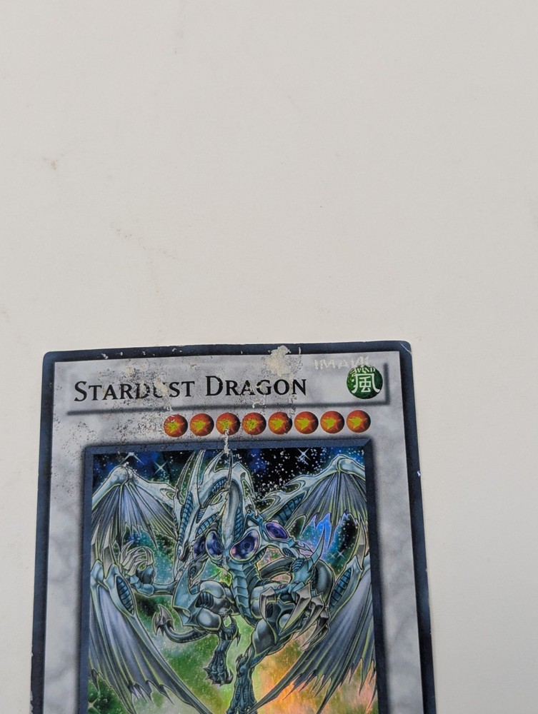 Up for sale is a limited edition Stardust Dragon card from the Yu-Gi-Oh! TCG. This Super Rare Synchro monster has an attack power of 2500 and is from the CT07 set. The card is made of high-quality card stock and features a holographic finish. This particular Stardust Dragon card is damaged, but still a great addition to any collector's or player's deck. It is the perfect card for those who love to collect vintage and rare items. Don't miss out on the chance to own this one-of-a-kind card!
