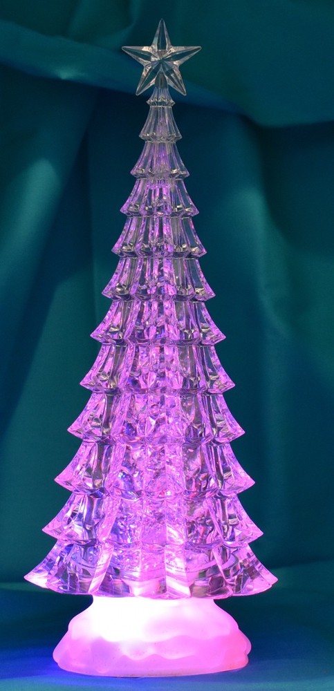 Theme: Christmas Brand: Starlight Collection Occasion: Christmas Material: Acrylic SKU: 16 Color: Clear Item Height: 13 inches Product: Acrylic Lighted Christmas Tree With Glitter Type: Tree LED Snowglobe Item Width: 5 inches Size: 13 inches