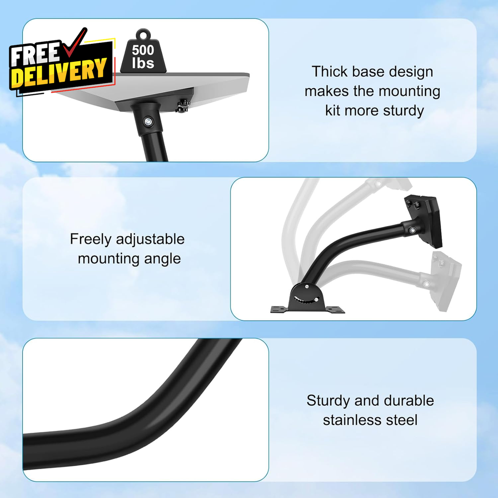 This Starlink Gen 3 mounting kit is a game-changer! The heavy-duty iron construction and stainless steel hardware make it incredibly sturdy, handling up to 500 lbs with ease. Perfect for any weather—wind, rain, or snow won’t budge it. The 180-degree adjustability ensures optimal positioning for your internet kit. Super easy to install and built to last. Highly recommend for anyone needing a reliable, durable mount!