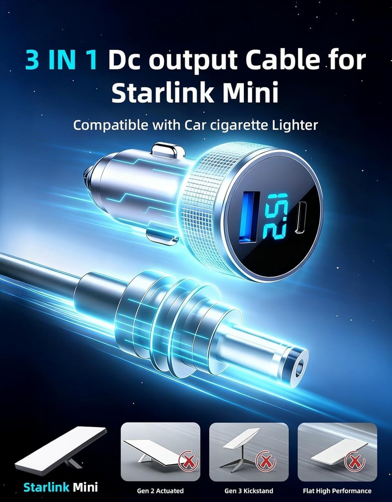 Free eBay listing template designed by dewiso.com Starlink Mini Cable, 3 in 1 Starlink Mini Car Adapter DC Power Cable and Cigarette Lighter Adapter 12V-48V with Voltage Display, Durable USB-C PD 45W and USB-A 35W Ports,Suitable for Cars(10FT) FREE AND FAST SHIPPING! About this item Power Up Your Starlink Mini Anytime, Anywhere: 3 In 1 Car Charger Dc Power Cable,This Dedicated Starlink Mini Adapter is Compatible with Universal 12v-48v Cigarette Lighter Sockets. Not Only Does it Power Your Starlink, But it Also Features A Usb-C 30w and Usb-A 30w Port, Delivering Stable Power in Cars, Trucks, Rvs, and Boats. Dc Plug is a Proprietary Interface—Do Not Connect Other Devices to Prevent Damage Starlink Mini Cable Digital Display Voltage Monitor for Safe Power Supply: Featuring a Digital Voltage Display, This Starlink Mini Car Charger Dc Power Cable Provides Real-Time Monitoring of Your Vehicle’S Voltage. Verify That it Meets The 12.8v Minimum to Ensure Consistent Performance, Offering a Stable Connection That Keeps Your Starlink Mini Car Adapter Ready for Seamless Network Access On The Go Starlink Mini 12v Adapter Dual Charging Ports: This Starlink Mini Power Cable Dc Power Cable Includes Type C and Usb-A Ports to Charge Additional Devices Like Phones When Starlink Mini is Not in Operation, Ensuring You Stay Connected Across Multiple Devices. Its Dual-Port Setup is a Convenient Choice for Those on The Road, Supporting Varied Power Needs During Travel High-Strength Starlink Power Cable – Durable and Safe: Made with Robust 18awg Shielded Cable That’S Flame-Retardant, Uv-Resistant, and Cold-Resistant to -30°C, This Starlink Mini Power Supply Dc Cable is Built to Last in Extreme Conditions, Providing Dependable Power for Your Off-Grid and Outdoor Connectivity Needs Essential Starlink Mini Accessories - Plug and Play. Suitable for Different Cars, Trucks, Buses, Vans, Boat and Mobile Power Bank with Cigarette Lighter Socket. It’S A Miust-Have for Those Who Depend on The Starlink Accessories for Uninterrupted Connectivity. Starlink Cable it Allows You to Enjoy High-Speed Internet and Stay Online While Traveling or Driving Product We offer a 30-Day Return Policy on items which you are not completely satisfied with. You have the option for a full-refund or an exchange of the item. No returns are available on items shipped outside of the US . Shipping We offer Free Shipping to the US and ship within 2 business days of payment, usually sooner. We use UPS express shipping. That's why your products are usually delivered within 3 days . Contact We try our very best to make sure every customer is completely satisfied. If there's a problem , message us! We're happy to help. 24/7 live chat available.
