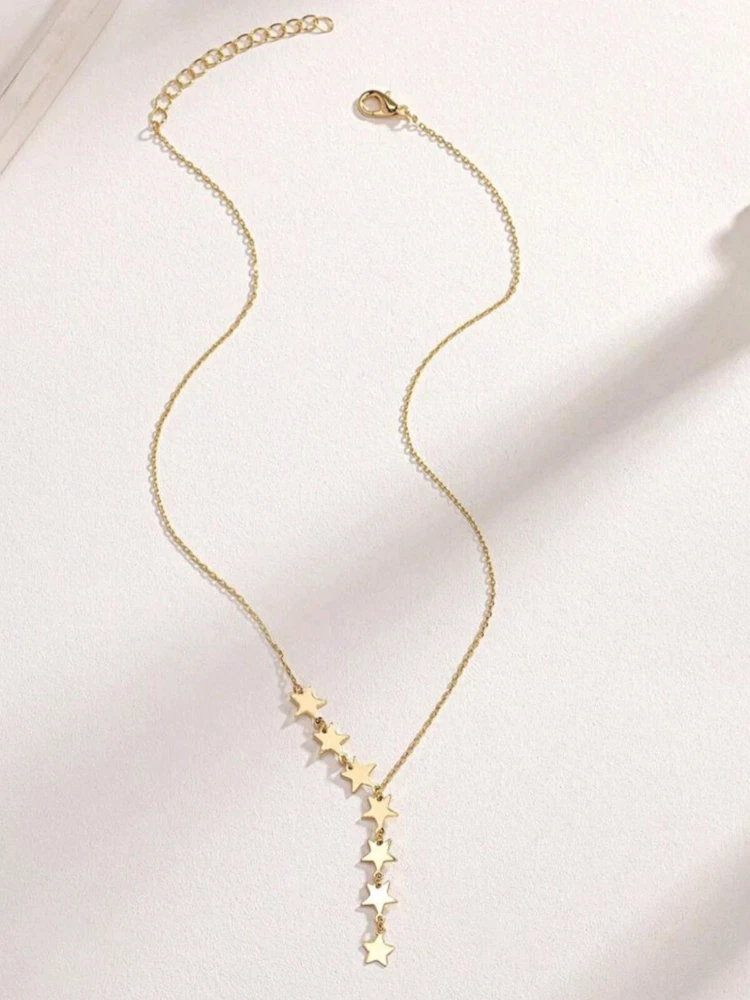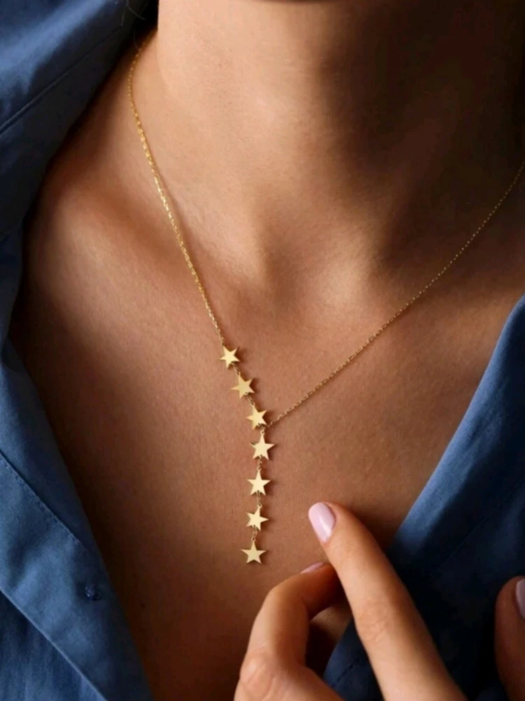 Why settle for ordinary when you can carry a piece of the cosmos? This delicate Y-chain necklace isn't just jewelry—it's a constellation of elegance, handpicked to add starlight to your style. The 18k gold plating shines like the Milky Way, while the dainty stars dangle gracefully, drawing eyes and compliments like the North Star. Whether you're dressed for a night out or layering for a casual day, this celestial beauty is the ultimate statement of subtle sophistication. Perfect as a gift or a treat for yourself, this necklace says, "You're the star of the show." Add it to your collection now, and let every step feel like a walk through the stars!