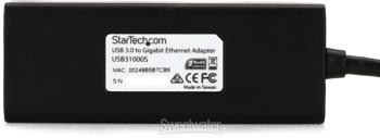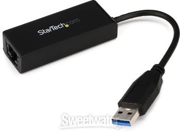 USB 3.0 to Ethernet Adapter Cable The Startech USB31000S USB 3.0 to Gigabit Ethernet Adapter lets you add a single RJ45 Ethernet port to a USB-enabled computer system, with support for gigabit network connections at full bandwidth. This expanded bandwidth surpasses that of standard USB 2.0 adapters, resulting in faster rates for data transmission. The USB31000S is also backward compatible with older USB 2.0/1.x systems and features support for Jumbo Frames, VLAN tagging, and Wake on LAN (WOL). A great gigabit network solution for your home or your business, this is a trusted cable here at Sweetwater.Startech USB31000S USB 3.0 to Gigabit Ethernet Adapter Features: Adapter cable lets you add a single RJ45 Ethernet port to a USB-enabled computer system Expands bandwith with support for gigabit network connections Backward compatible with older USB 2.0/1.x systems Supports Jumbo Frames, VLAN tagging, and Wake on LAN (WOL) Great gigabit network solution for Sweetwater is an Authorized StarTech.com Dealer Genuine New Item Sweetwater's 2-year warranty StarTech.com USB31000S USB 3.0 (Type-A) to Gigabit Ethernet Adapter USB 3.0 (Type-A) to Gigabit Ethernet Adapter USB 3.0 to Ethernet Adapter Cable The Startech USB31000S USB 3.0 to Gigabit Ethernet Adapter lets you add a single RJ45 Ethernet port to a USB-enabled computer system, with support for gigabit network connections at full bandwidth. This expanded bandwidth surpasses that of standard USB 2.0 adapters, resulting in faster rates for data transmission. The USB31000S is also backward compatible with older USB 2.0/1.x systems and features support for Jumbo Frames, VLAN tagging, and Wake on LAN (WOL). A great gigabit network solution for your home or your business, this is a trusted cable here at Sweetwater. Startech USB31000S USB 3.0 to Gigabit Ethernet Adapter Features: Adapter cable lets you add a single RJ45 Ethernet port to a USB-enabled computer system Expands bandwith with support for gigabit network connections Backward compatible with older USB 2.0/1.x systems Supports Jumbo Frames, VLAN tagging, and Wake on LAN (WOL) Great gigabit network solution for your home or your business Specification Detail Type USB 3.0 to Ethernet Adapter Data I/O 1 x Ethernet (Gigabit) USB 1 x Type A (male) Power Source USB bus powered RETURN INFORMATION We want you to be completely happy with your purchase from Sweetwater. If you are not satisfied with your product, you may return it for a refund of the purchase price within 30 days. If your purchase was eligible for Free Shipping, the shipping cost will be deducted from your credit or refund. Returns must be in the complete and original packaging with all accessories and complete documentation (Owner's Manual, warranty card, quick start guides, etc.), show no signs of wear or use, and include a Return Authorization number or be subject to a restocking fee.