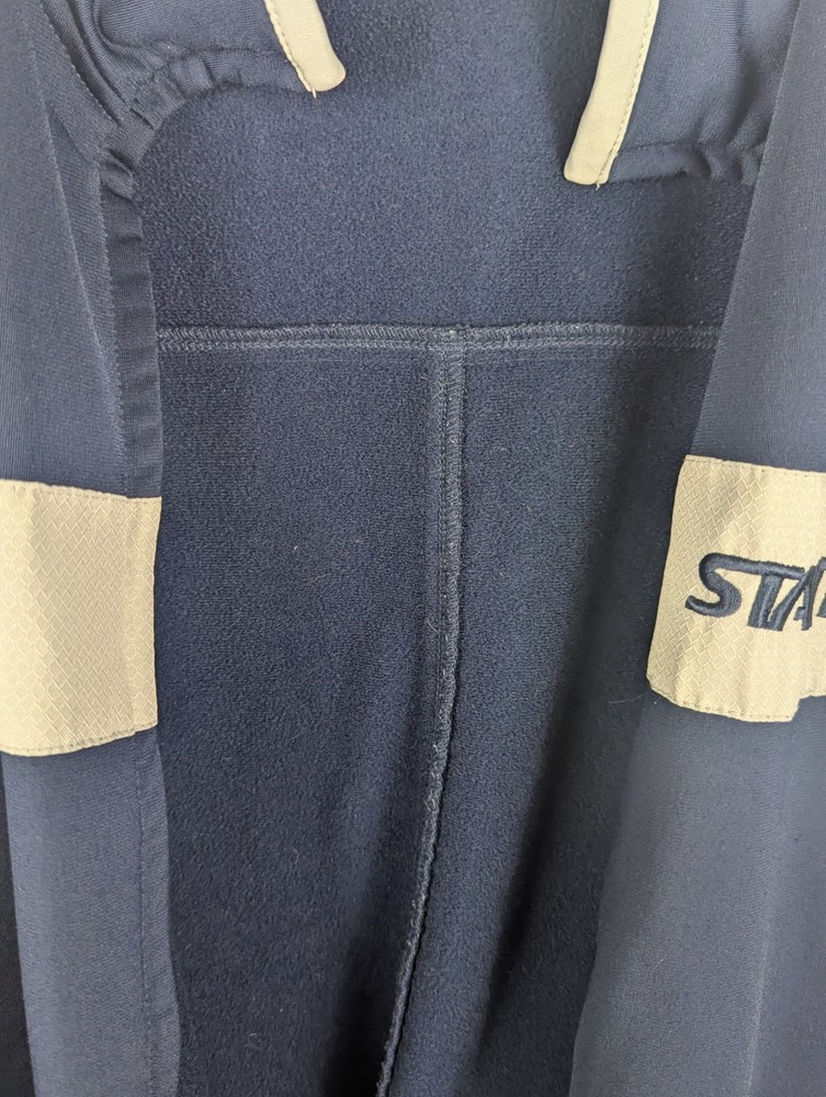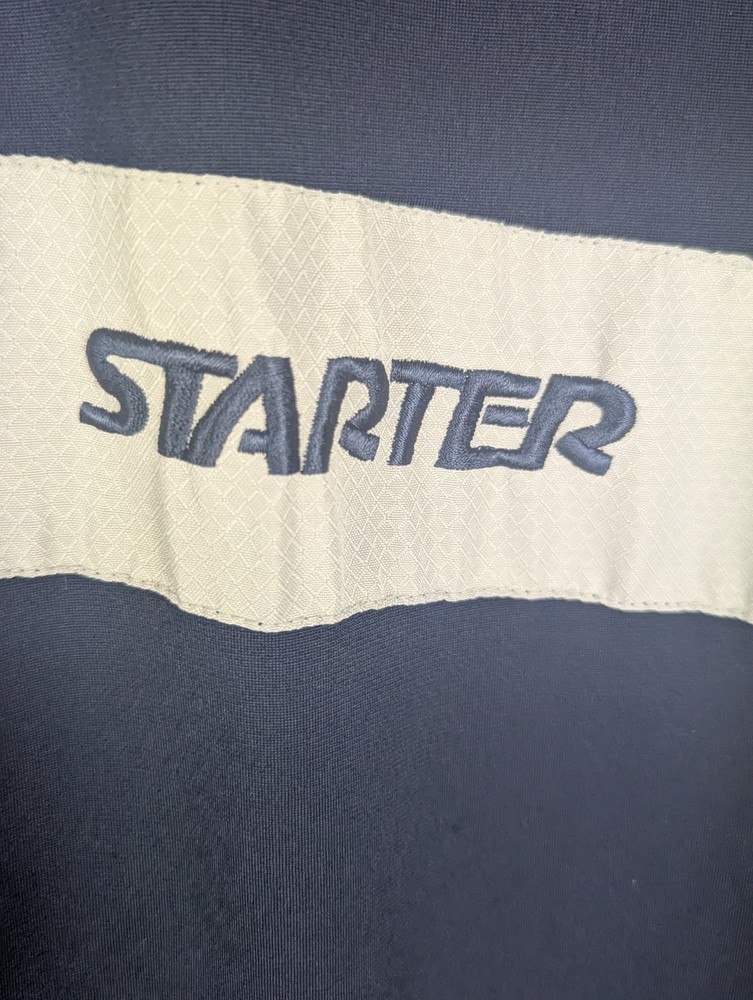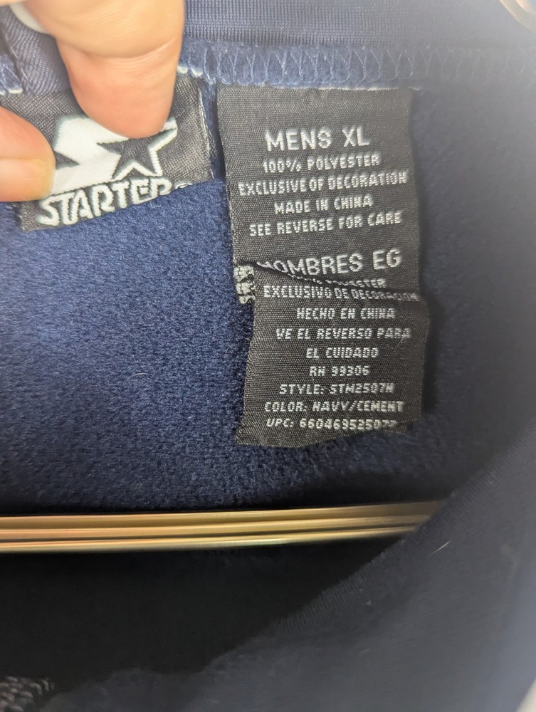 Style: Windbreaker Outer Shell Material: Polyester Accents: Logo Performance/Activity: Walking Lining Material: Polyester Season: Spring, Winter Personalise: No Pattern: No Pattern Type: Jacket Fabric Type: Fleece Country of Origin: China Department: Men Size Type: Regular Size: XL Occasion: Casual Closure: Zip Handmade: No Insulation Material: Polyester Brand: Starter Garment Care: Machine Washable Colour: Blue